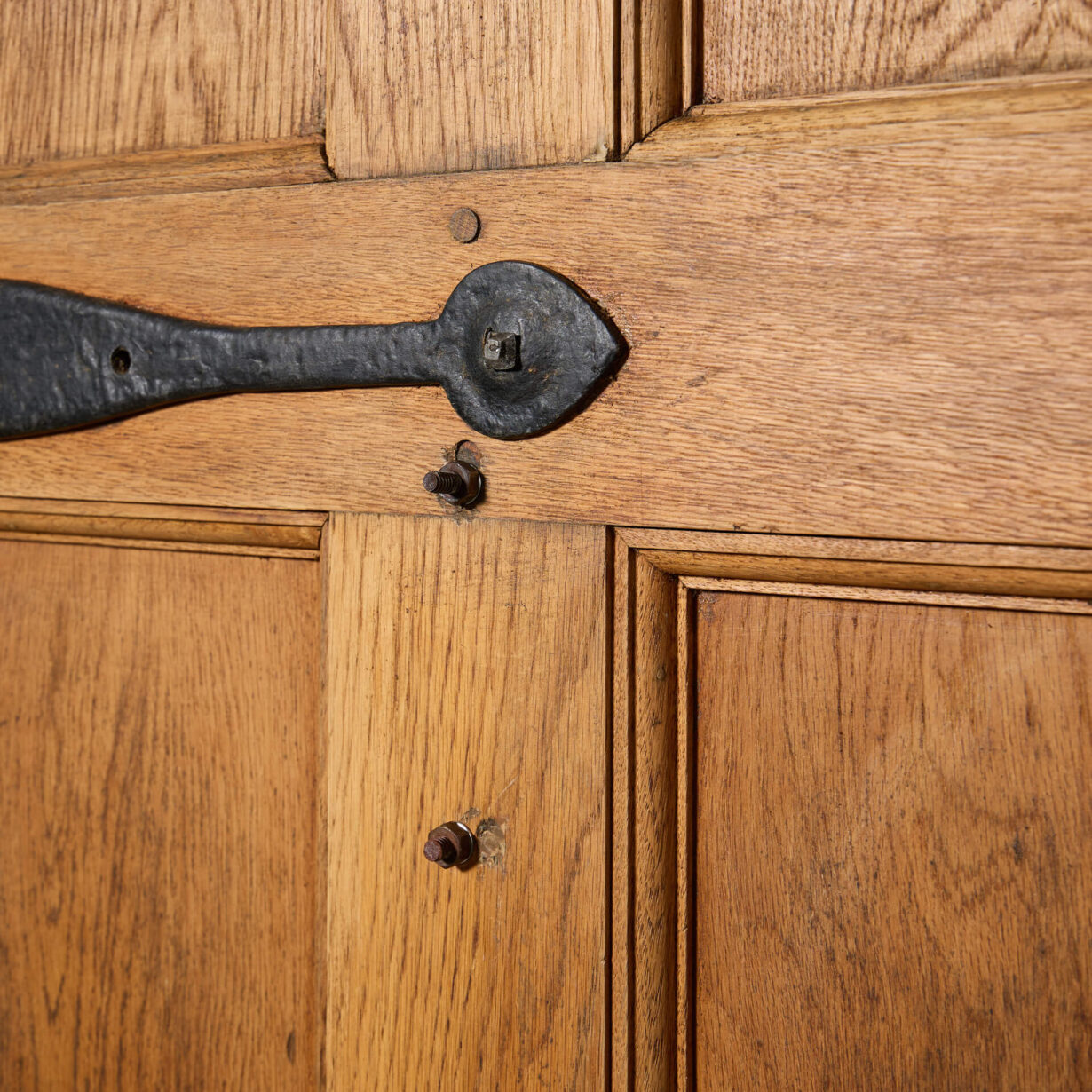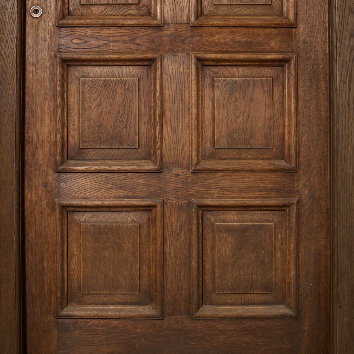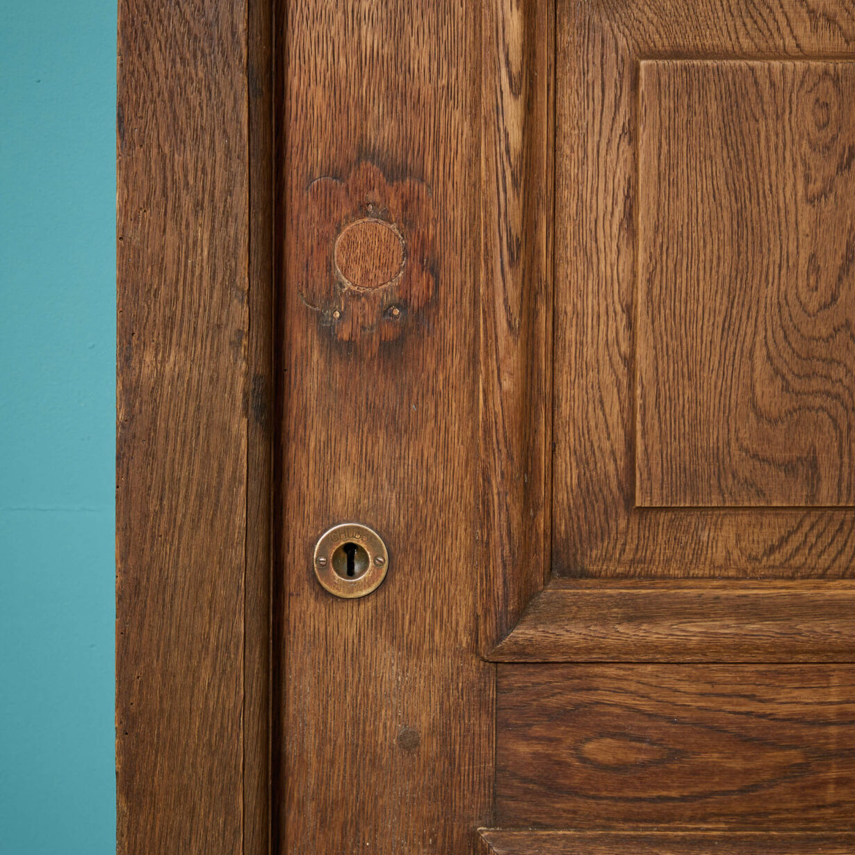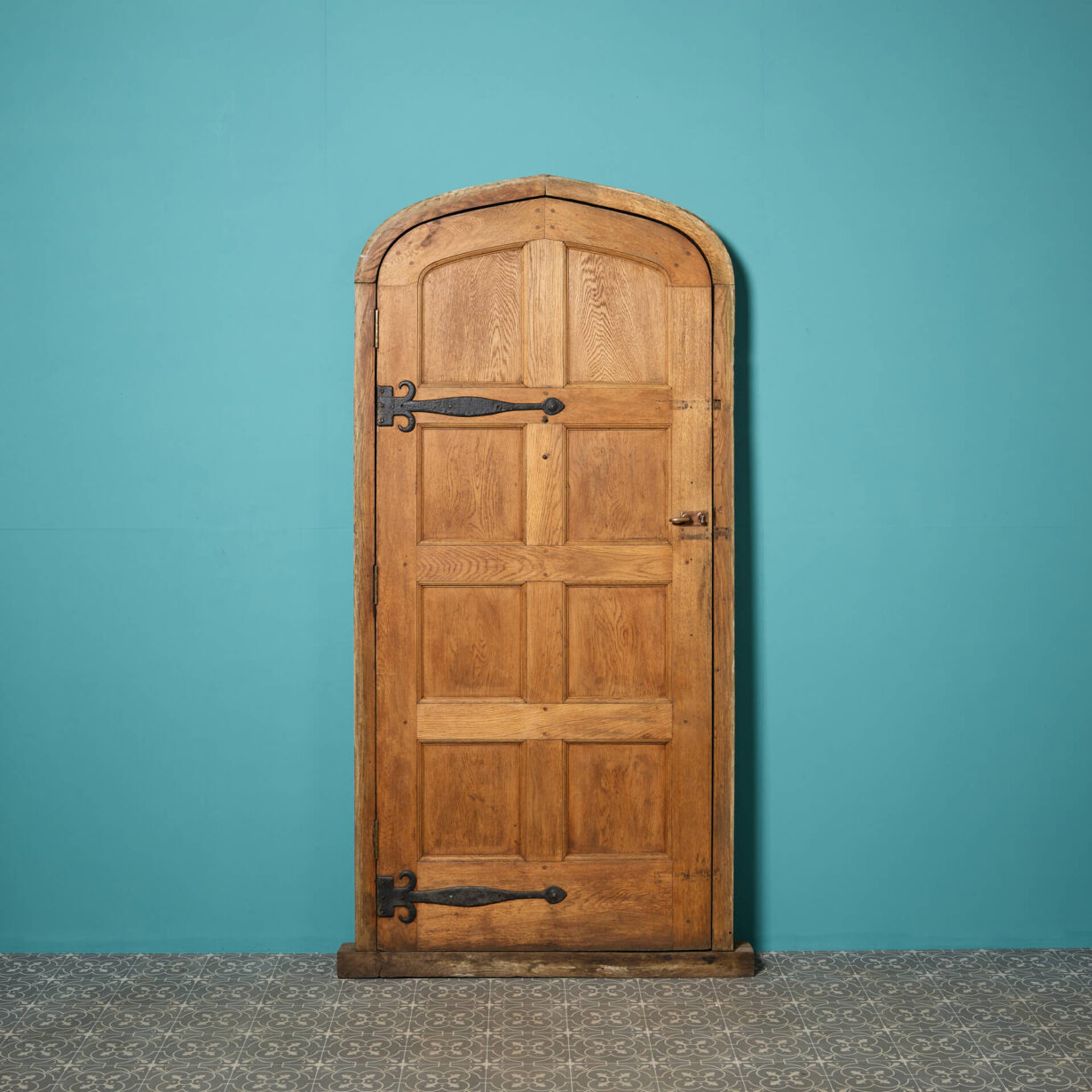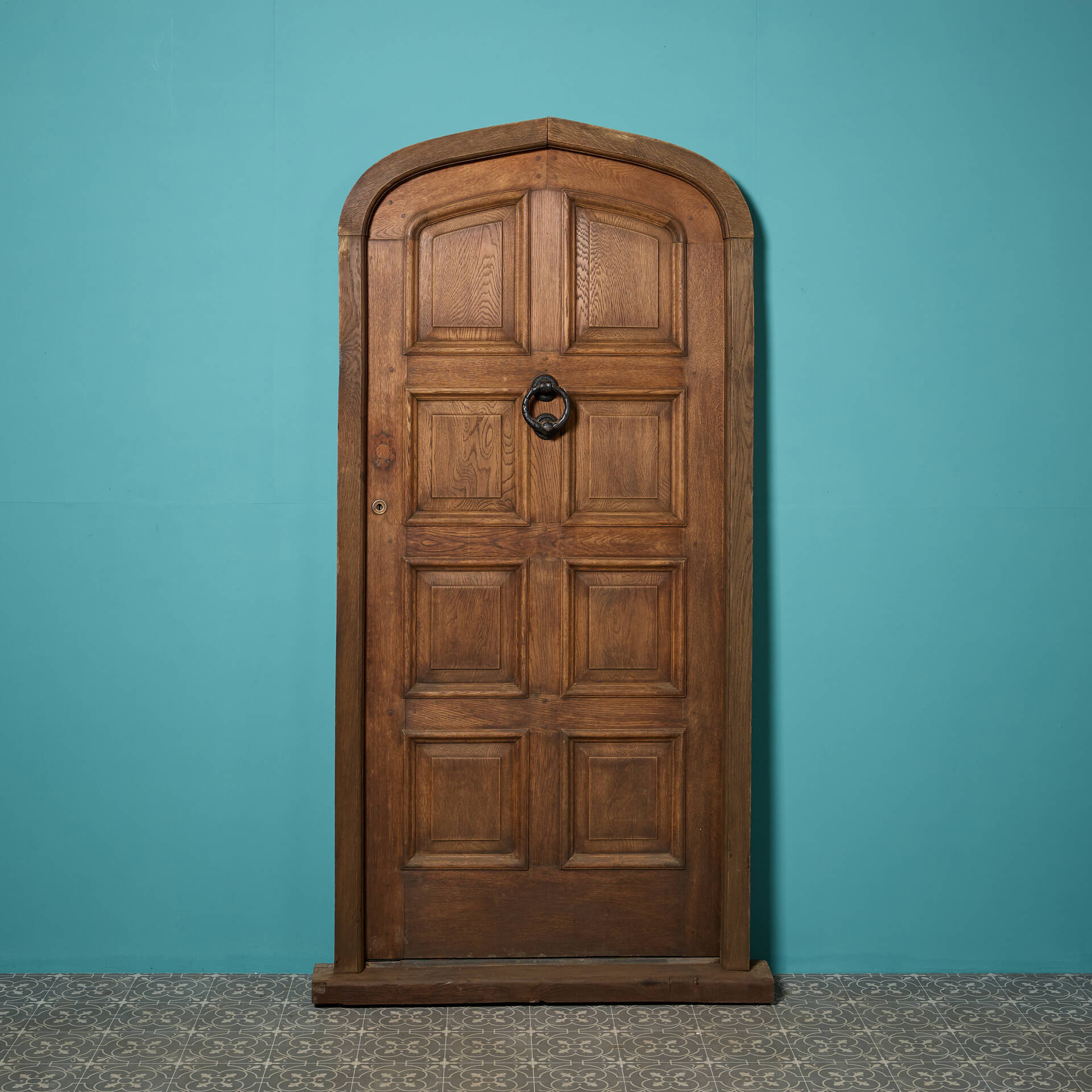 This door dates back to the early 20th century, and is constructed to an exceptional standard showing the full, deep grain of the oak. It has an arched top with eight raised and fielded panels.