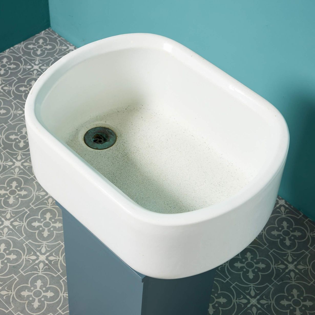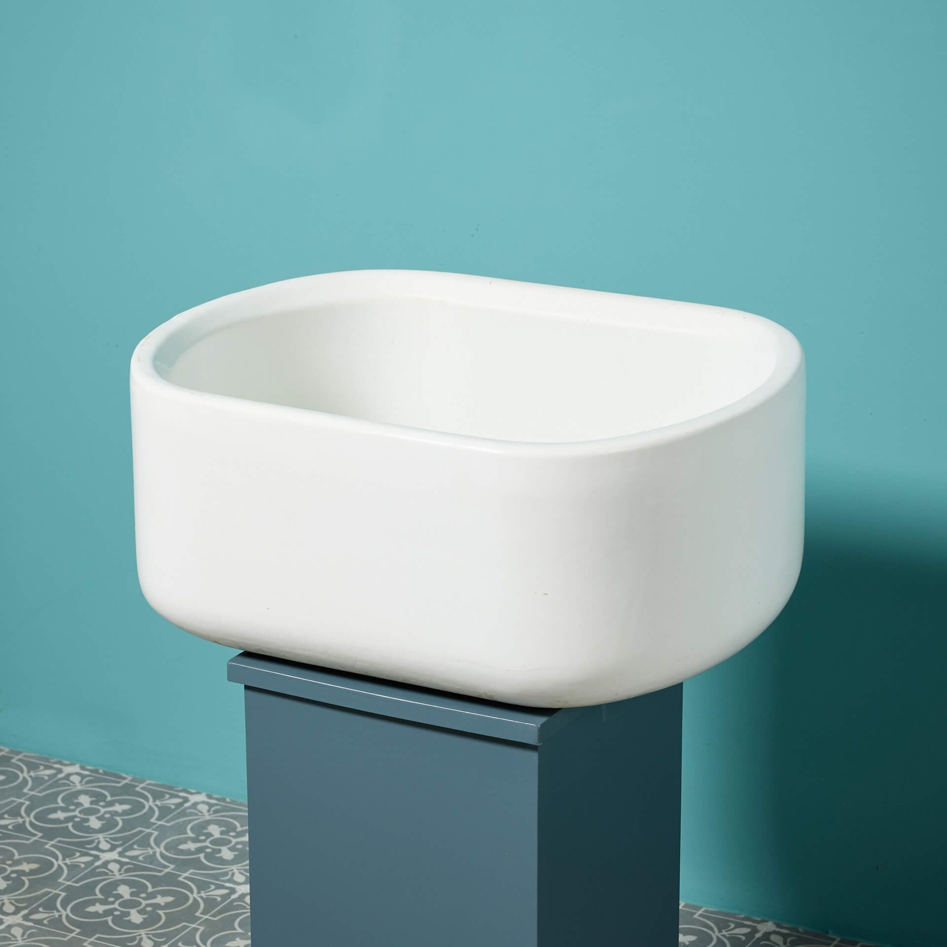 back to topAn unusually-shaped English oval belfast sink, reclaimed from a UK factory. Fitted with it’s original waste, this reclaimed belfast sink is the perfect addition to a modern farmhouse kitchen or contemporary utility room. Other similar basins available, sold separately.