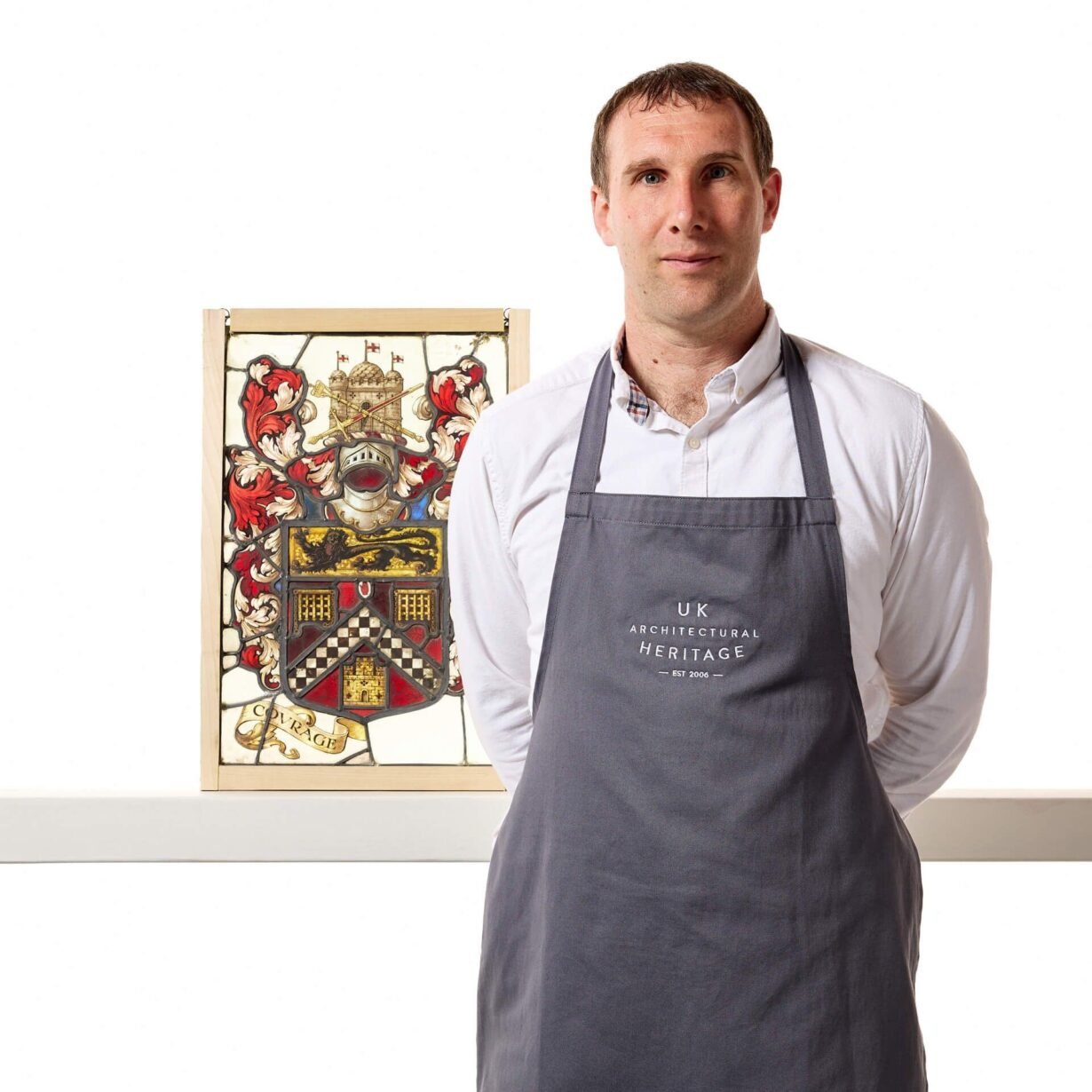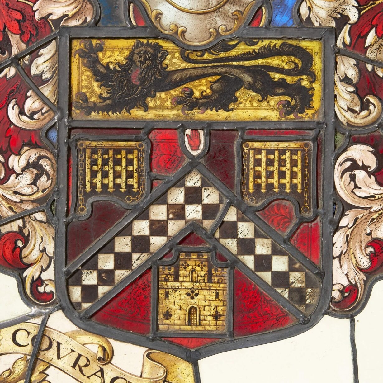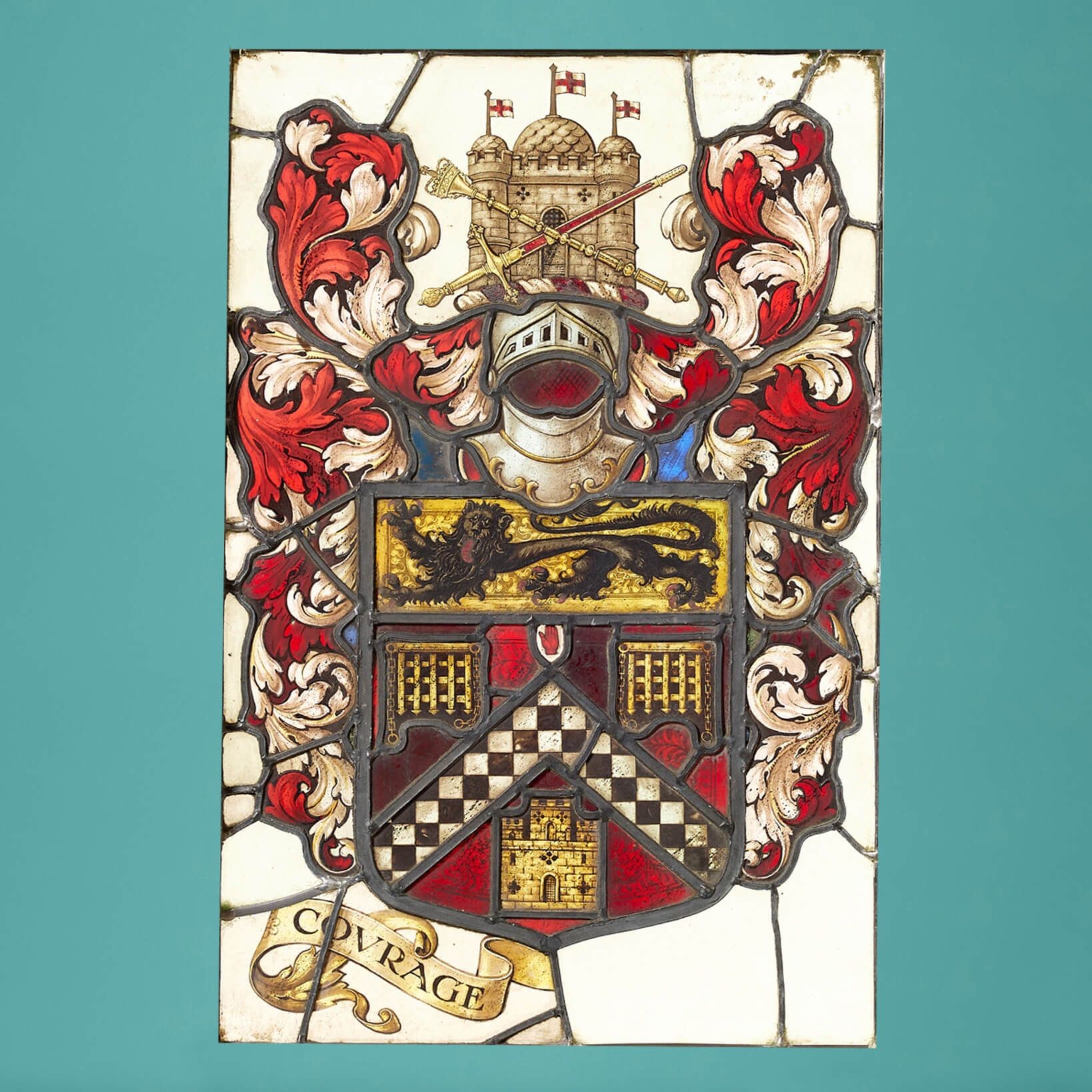 back to topA reclaimed heraldic stained glass window circa 1914, depicting the coat of arms of Arthur Samuel.