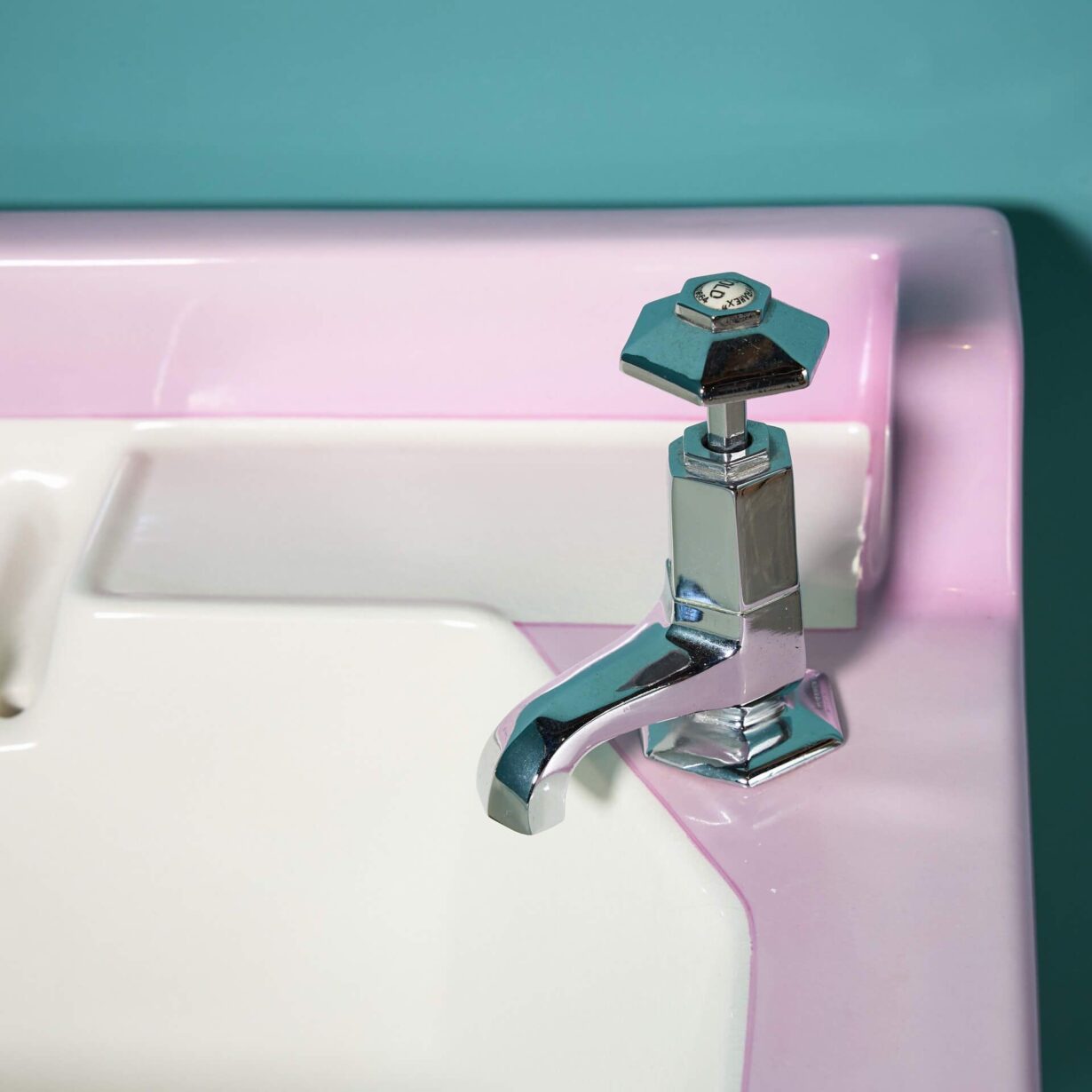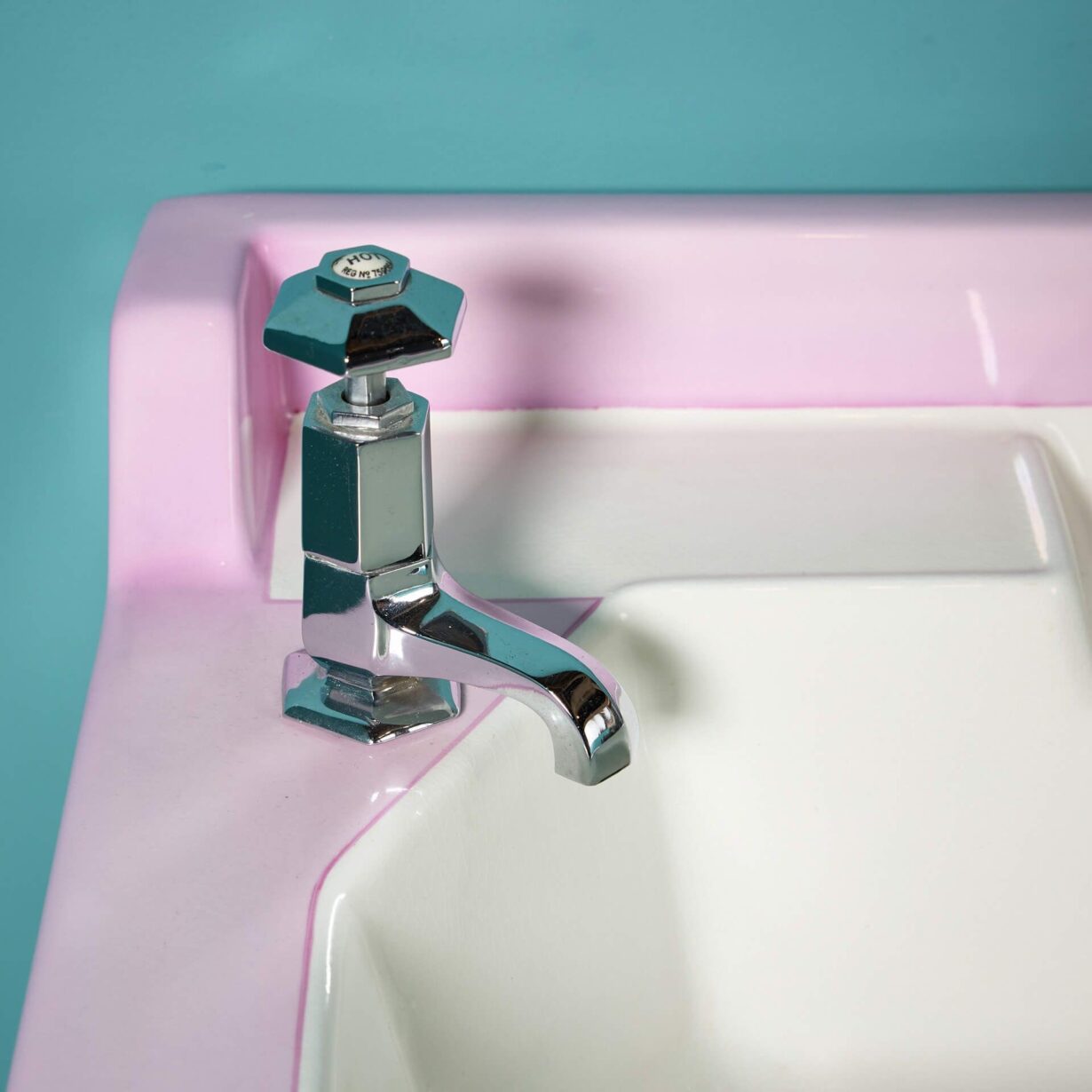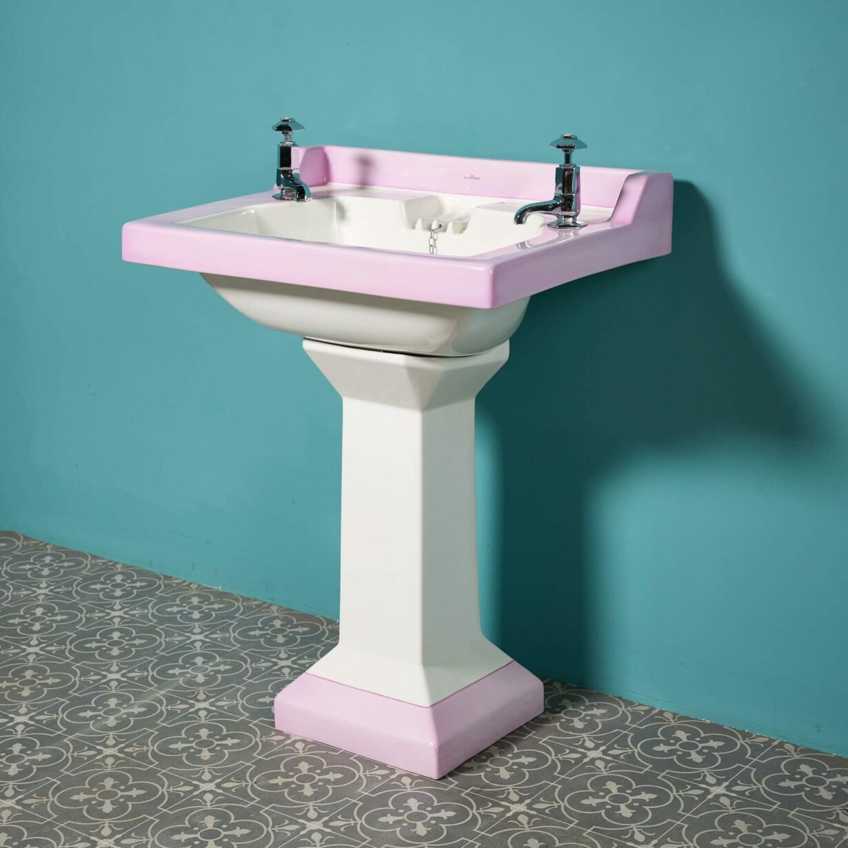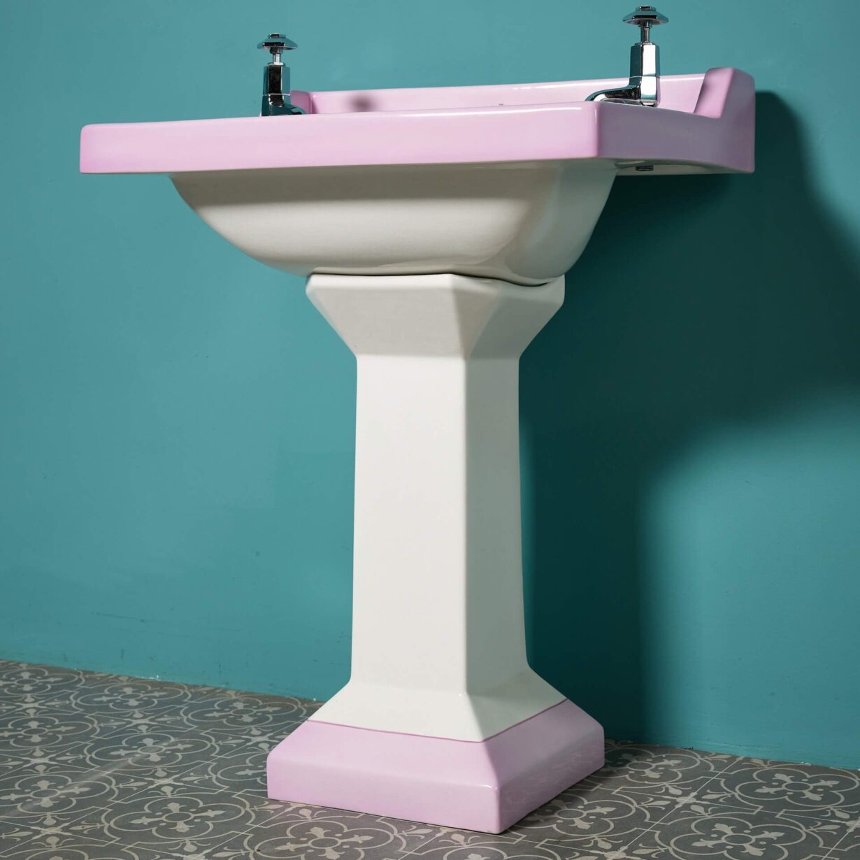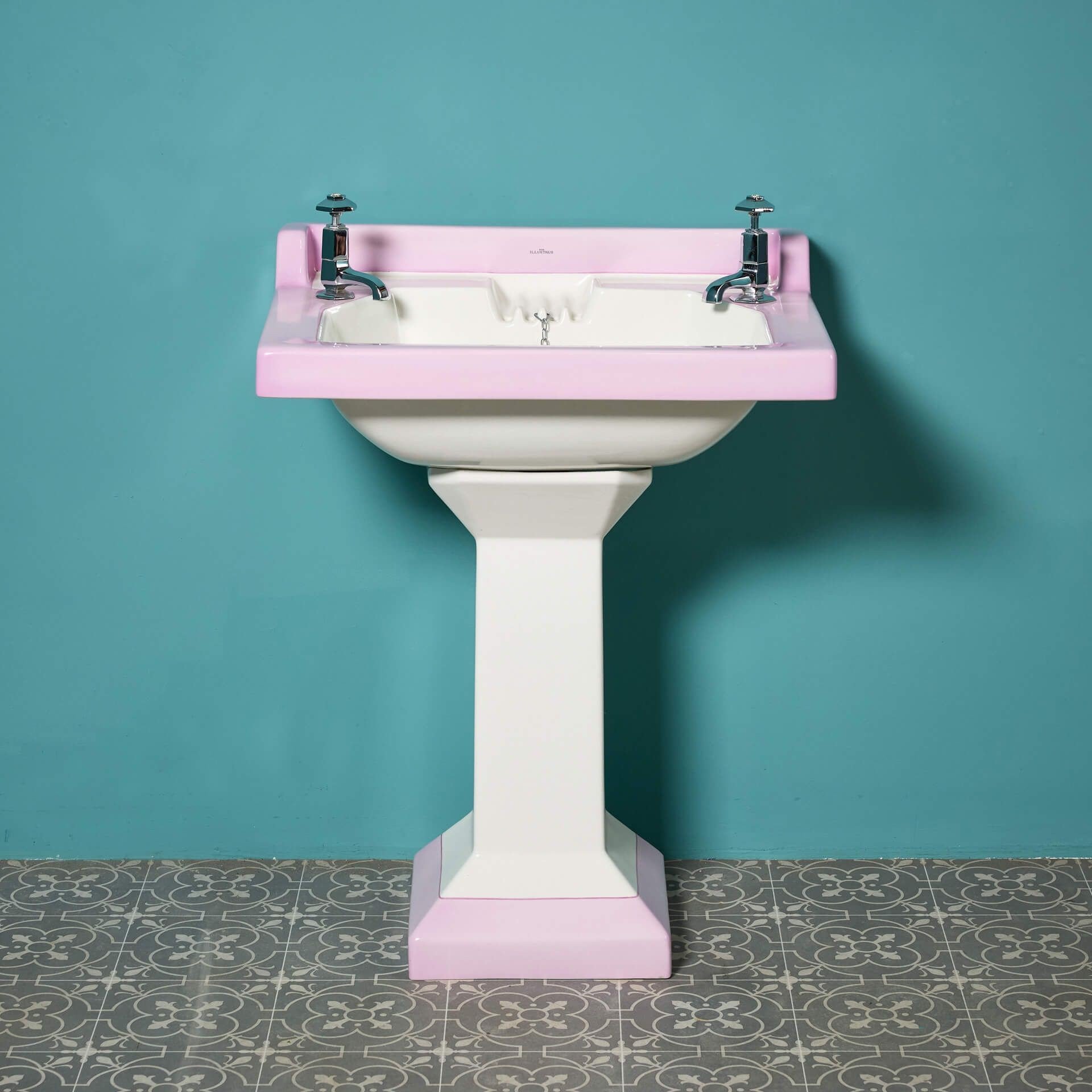 Originating from early 20th century England, this striking sink showcases vibrant pink edging that only adds to the quality Art Deco design.