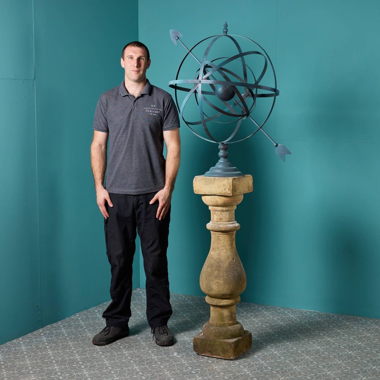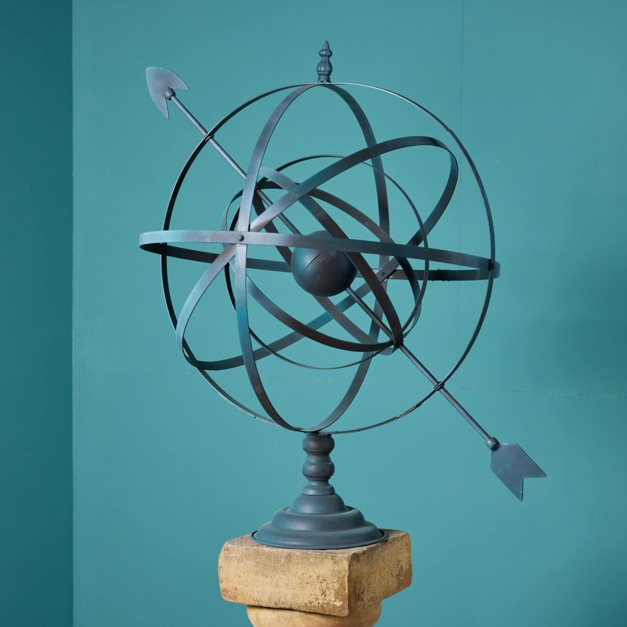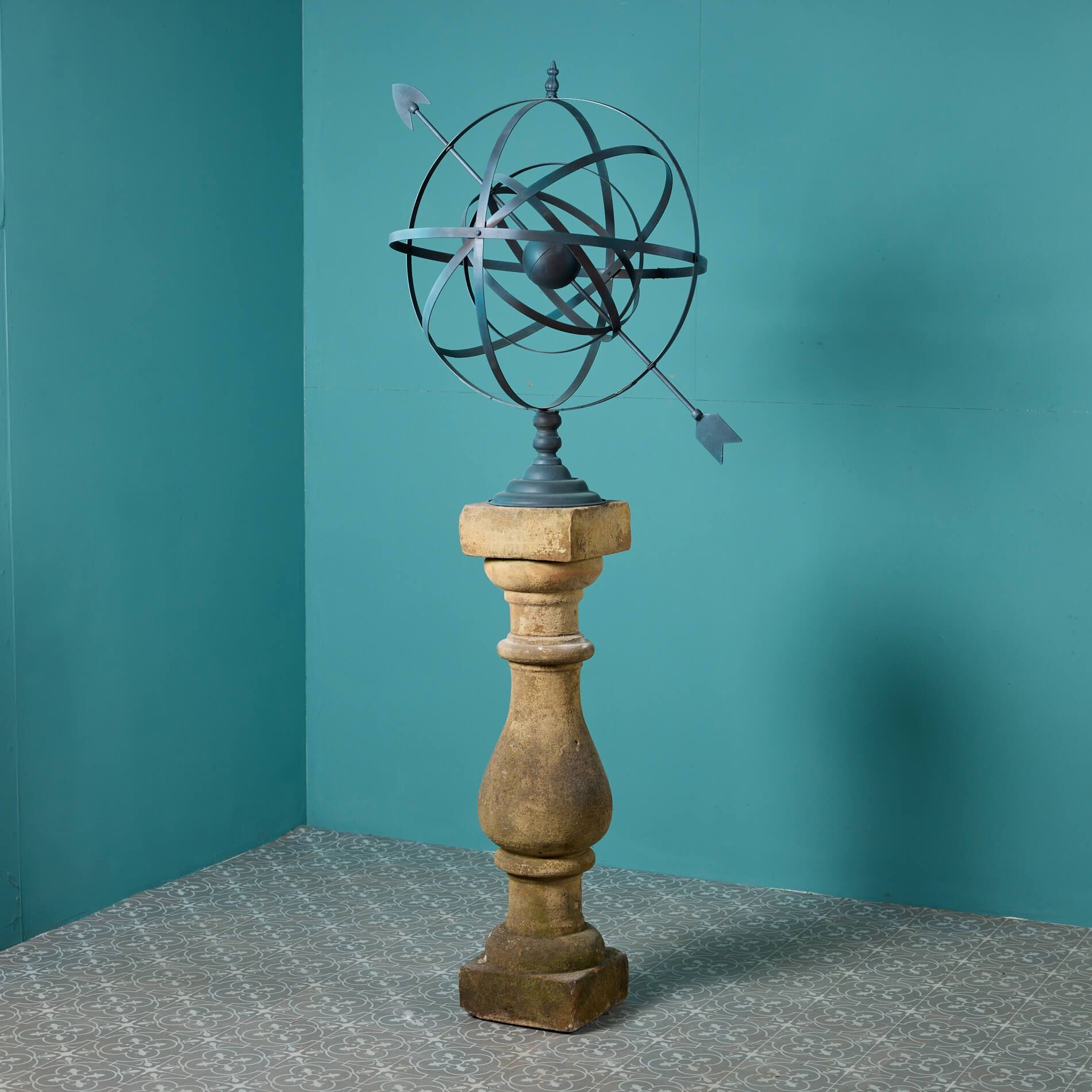 back to topWith its large size and eye-catching design, this reclaimed armillary sundial makes a striking focal point in any garden. It features a large late 20th century steel armillary sphere elevated on an antique 19th century York stone pedestal. This is weathered with beautiful ageing that only exposure to the elements through time can create.