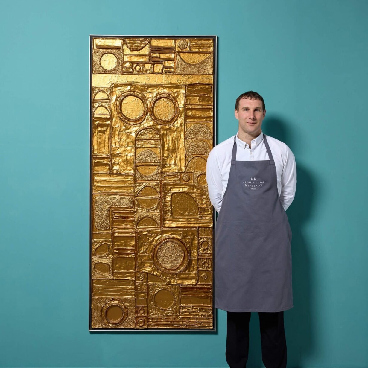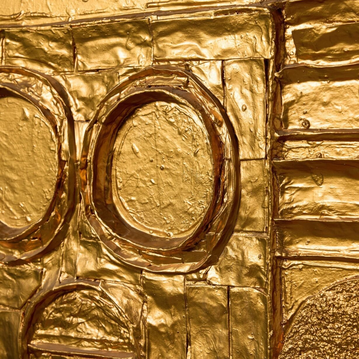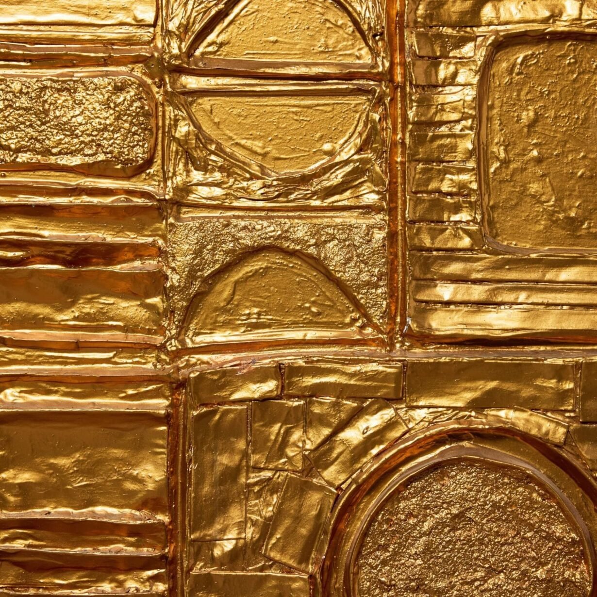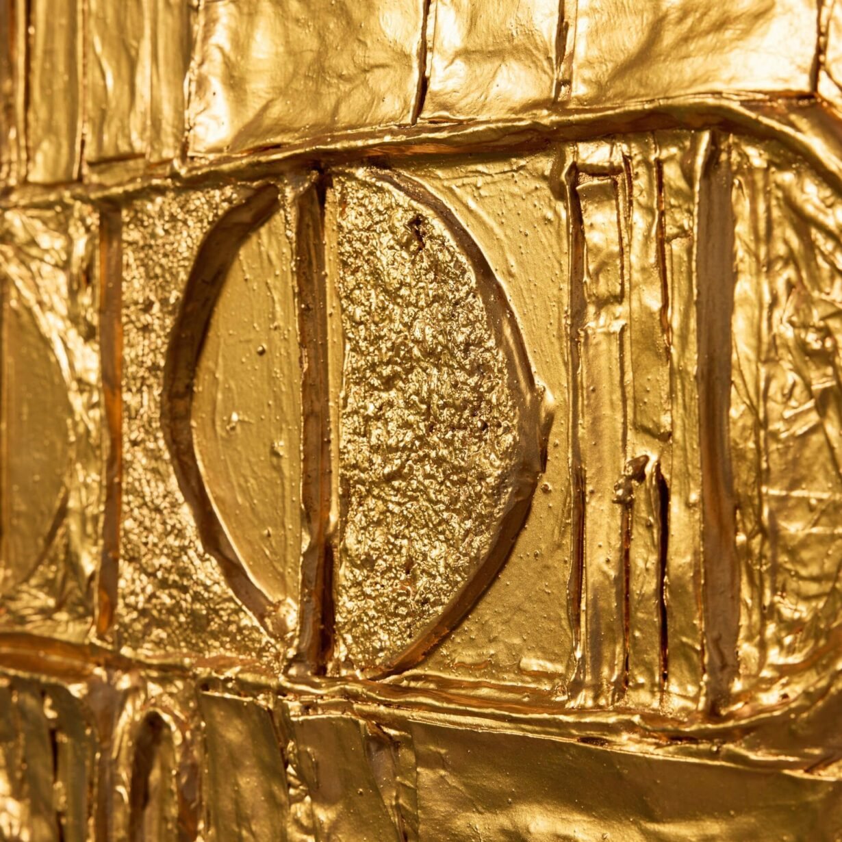back to topA reclaimed mid century modern abstract wall art. This abstract modernist artwork piece creates an impact with its intricate, handcrafted design and unusual geometric shapes worked in relief, all finished in a vibrant gilt gold tone that catches the eye.