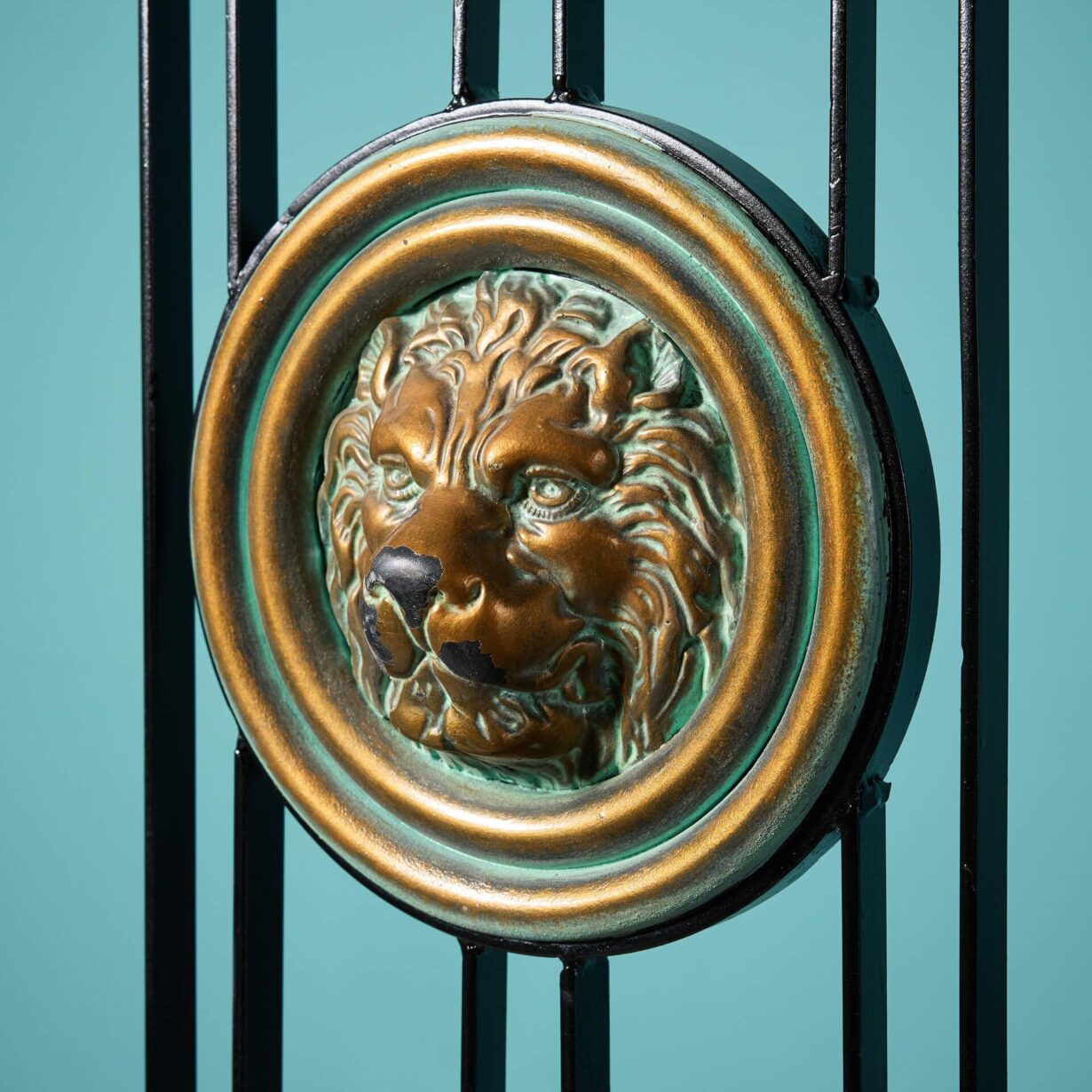 back to topAn interesting and unusual reclaimed tall wrought iron gate with lion mask roundel to the front side. Made in composition, the lion mask is finished with a bronze effect, bringing an air of grandeur to the entrance of your garden or courtyard.