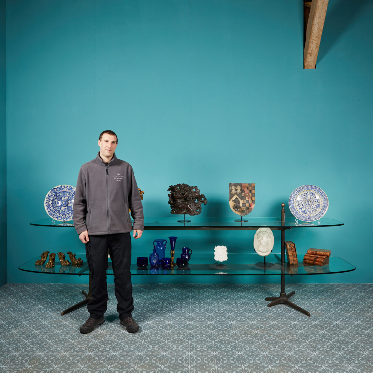 We have three display stands available and one similar, smaller stand. We also have two jewellery cabinet styled pieces salvaged from the same shop.