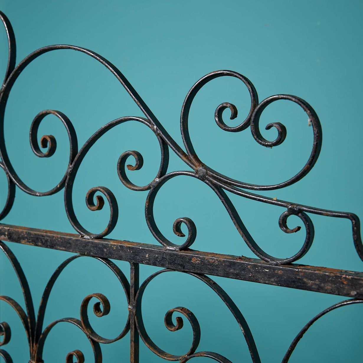 Crafted in England, these tall gates have a very wide opening, making them perfect for an active garden. The upper and lower rows of scrollwork resemble butterflies, whereas the metalwork in the centre of the frame is more narrow than the border, so the view is not obscured when closed.
