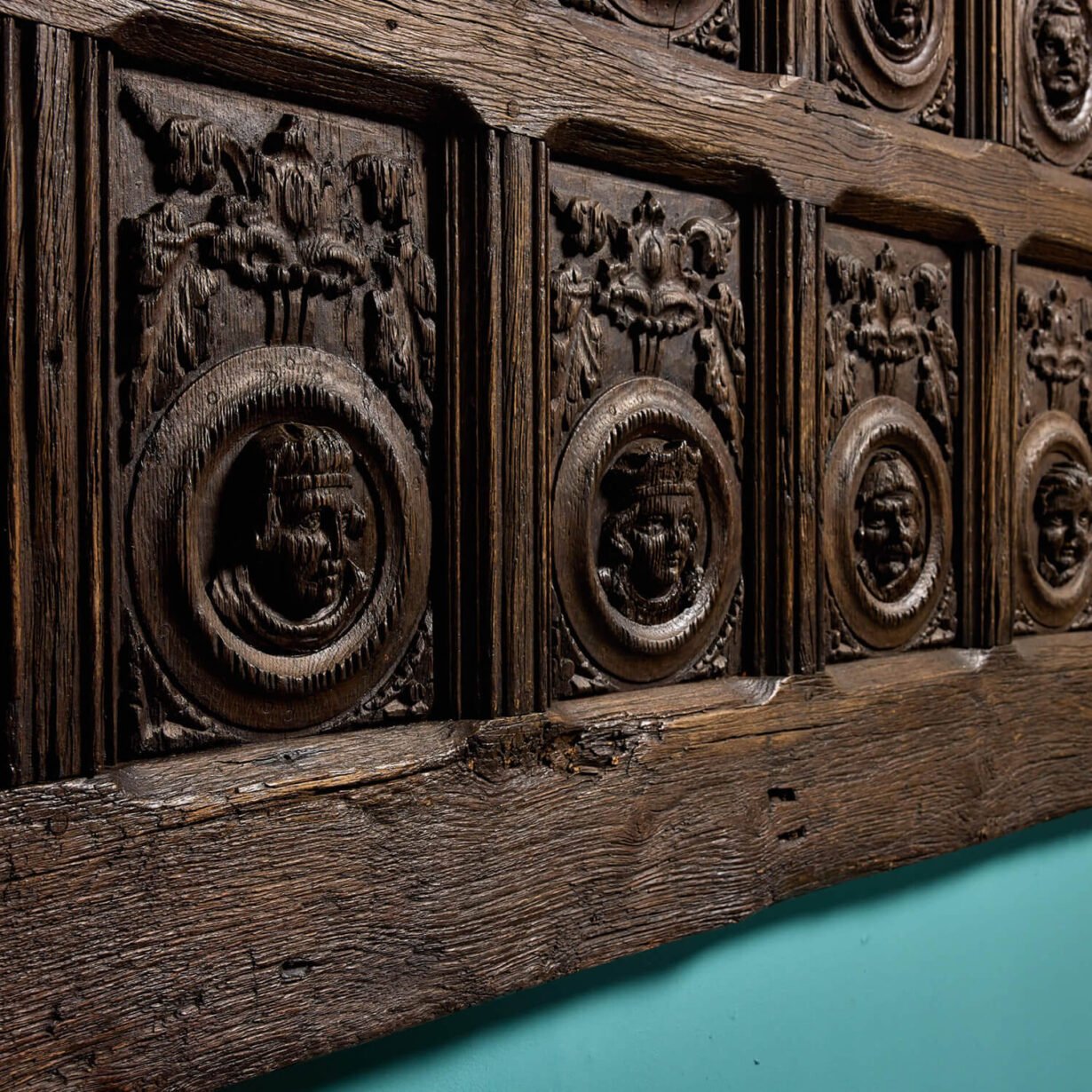 In today’s interiors, this carved oak panel could be used as wall decoration to bring a sense of grandeur and intrigue to period panelling. Alternatively, it could be repurposed as a headboard for a Tudor or Jacobean style four poster bed.