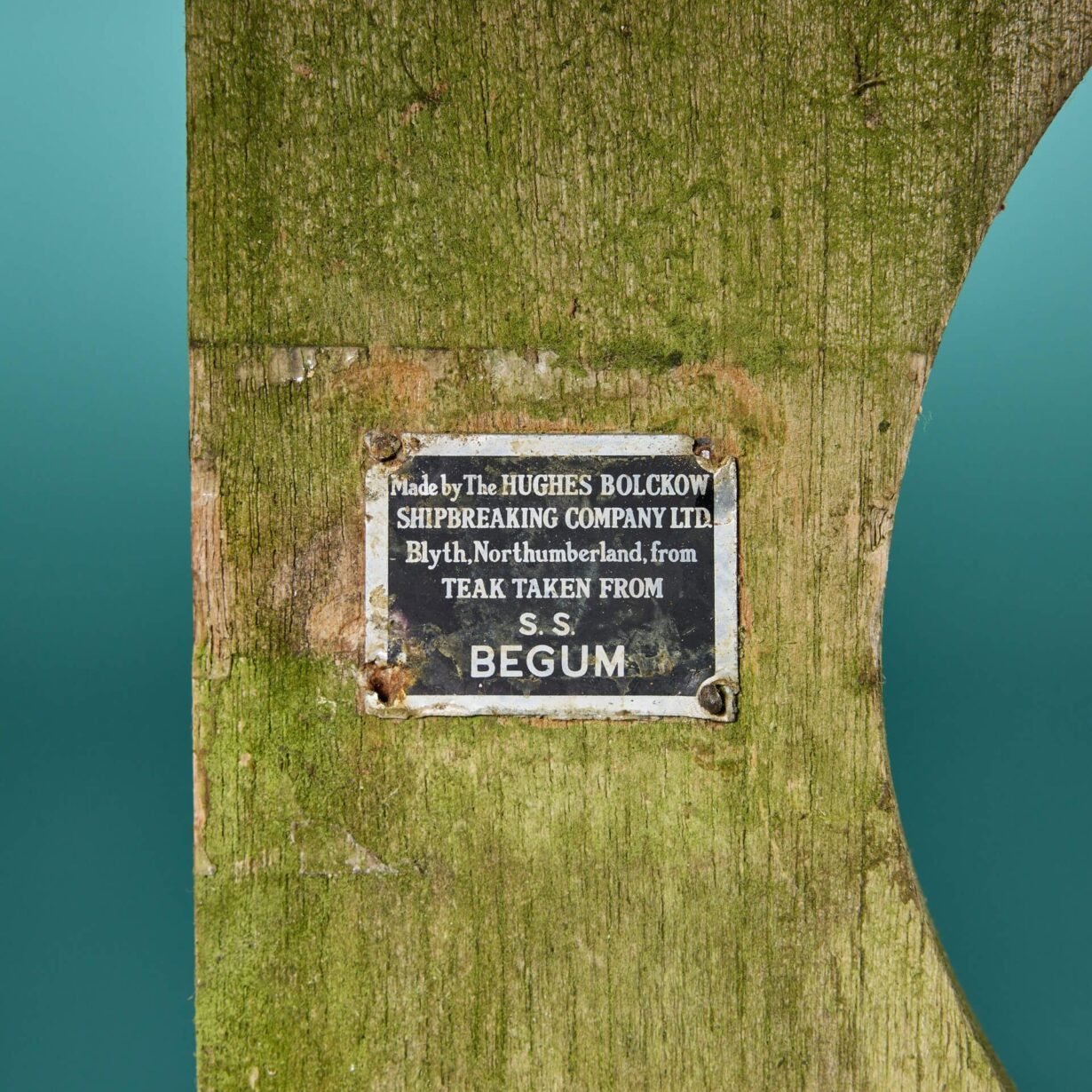 Established at the beginning of the 20th century, the Hughes Bolckow Shipbreaking Company dismantled obsolete warships at their premises in Blyth, Northumberland. The wood from these ships was transformed into furniture and garden items such as this teak garden dining set from the S. S. Begum. An identical table to this one appears in an advert for Hughes Bolckow garden furniture (pictured).