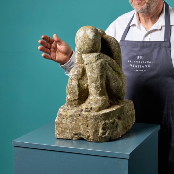 In medieval style, this statue has a characterful well weathered finish paired with its intriguing subject, making it a striking statement piece in any garden or interior.