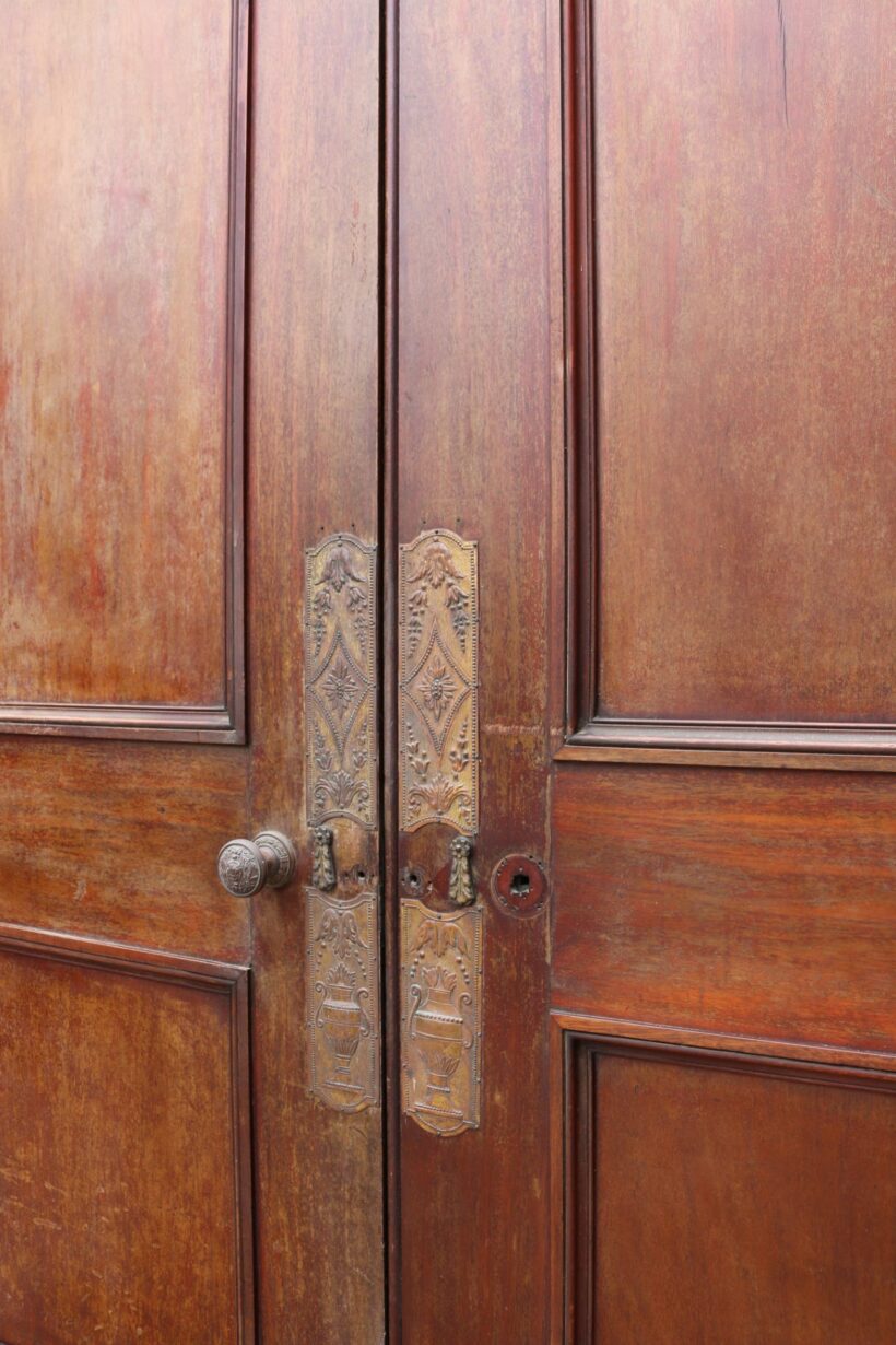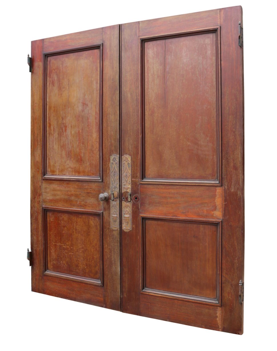 back to topSet of 19th Century English Mahogany Double Doors. These Regency style Mahogany interior doors were reclaimed from the now demolished Broome Court.