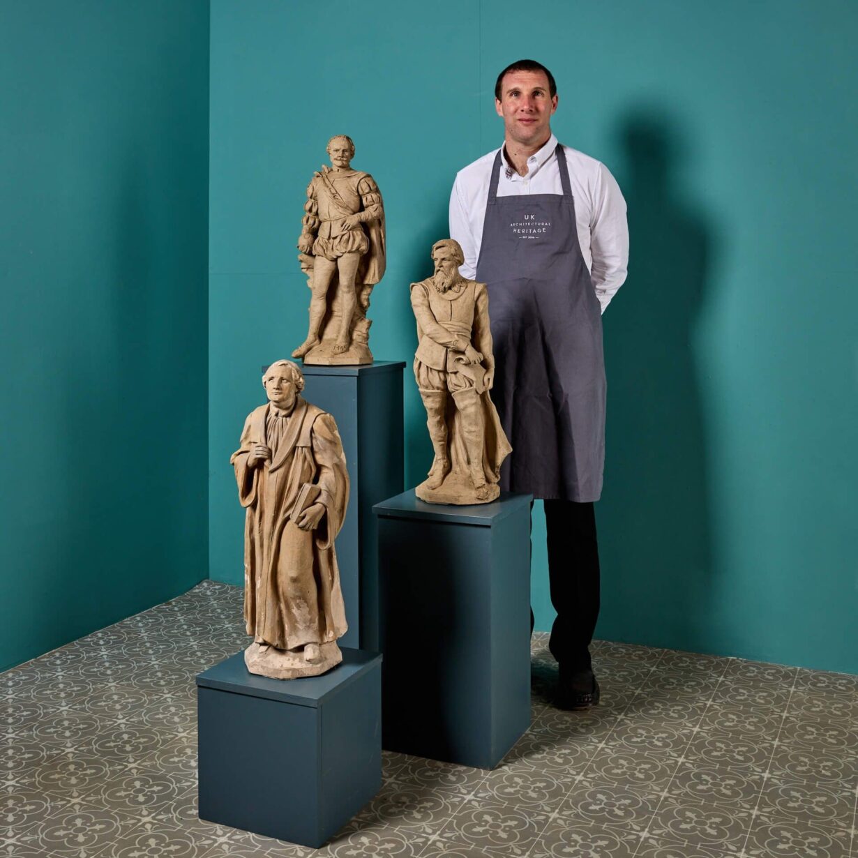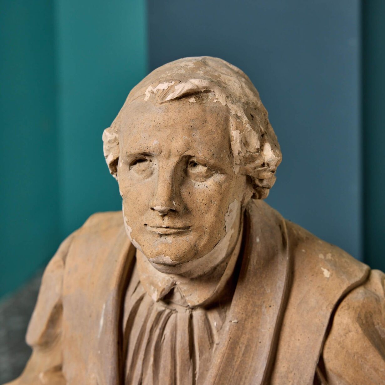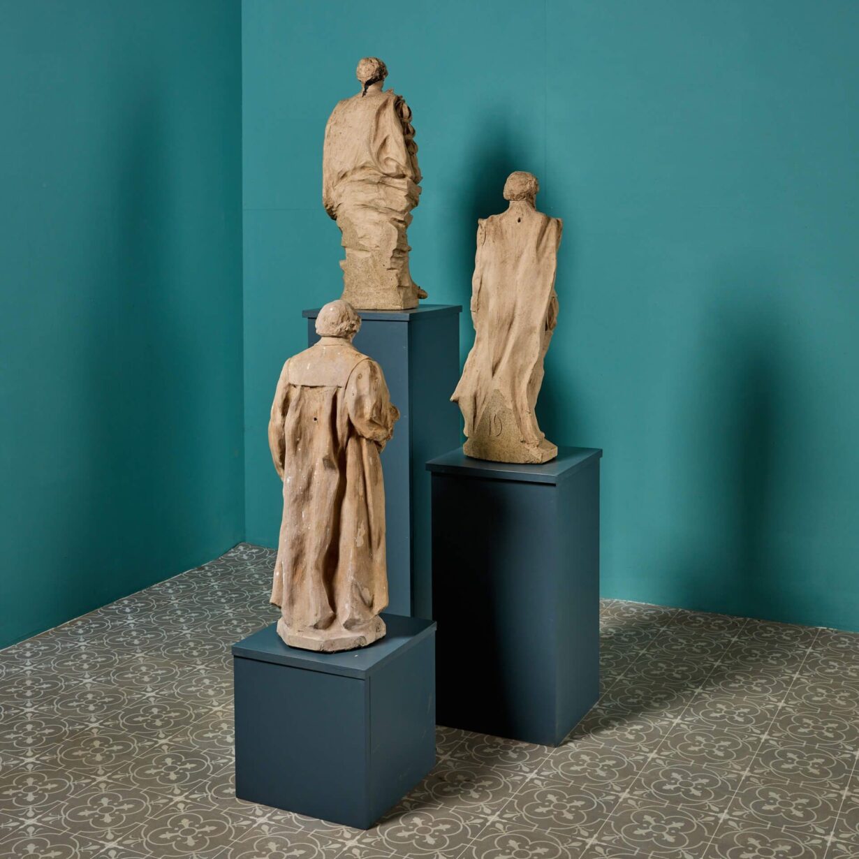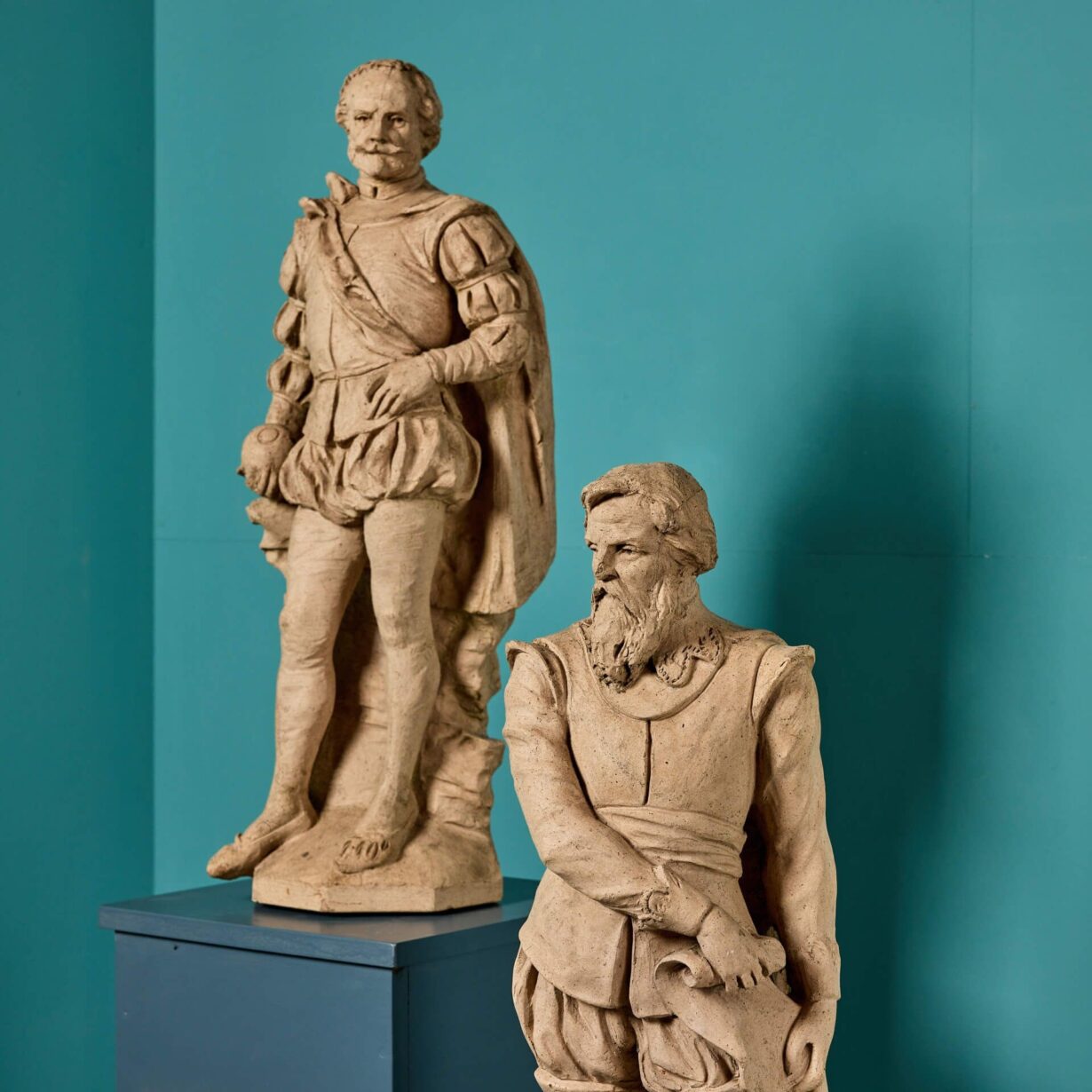back to topA set of 3 antique buff terracotta statues depicting notable historical English figures possibly by Blanchard. Included in the collection are statues of Francis Drake; 16th century explorer, John Wesley; founder of the Methodist movement and an unknown renaissance figure. We are also selling a larger group of 10 similar figures.