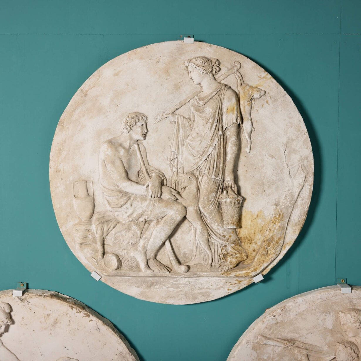 back to topThree large neoclassical style plaster wall roundels after renowned Italian sculptor, Antonio Canova (1757 – 1822).