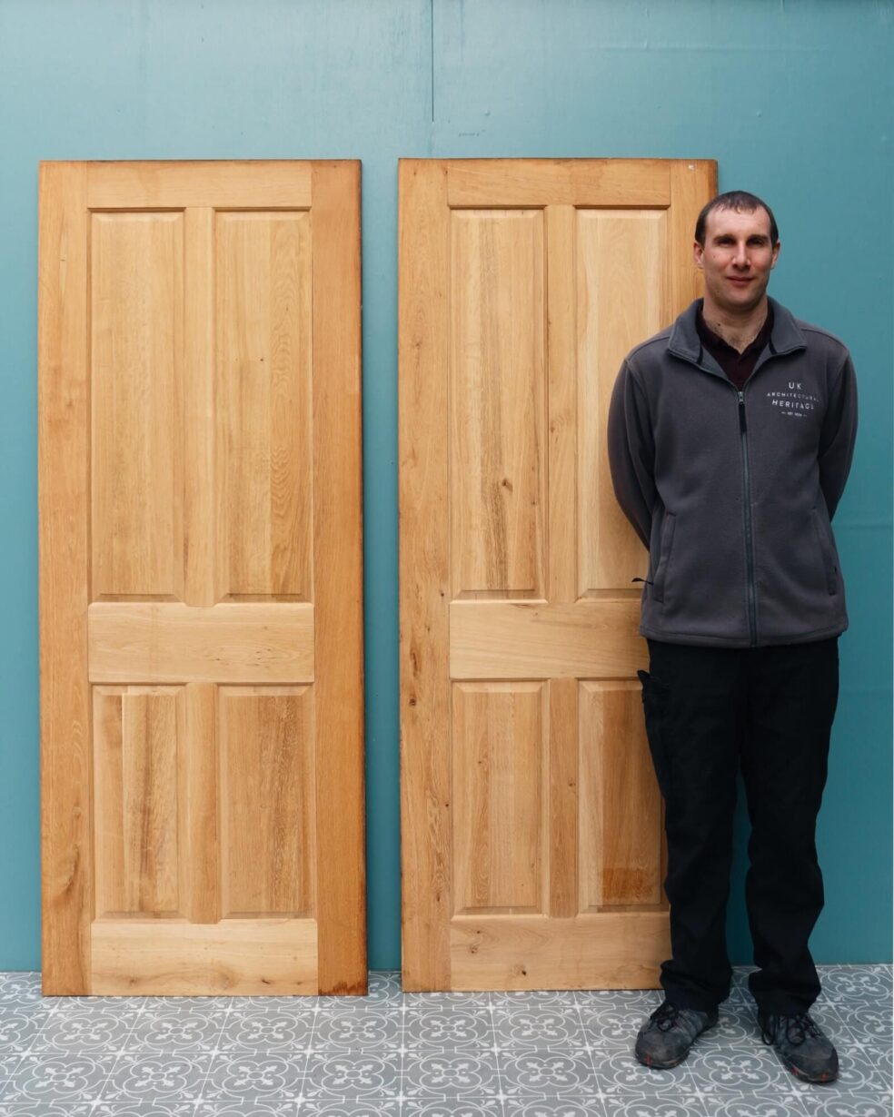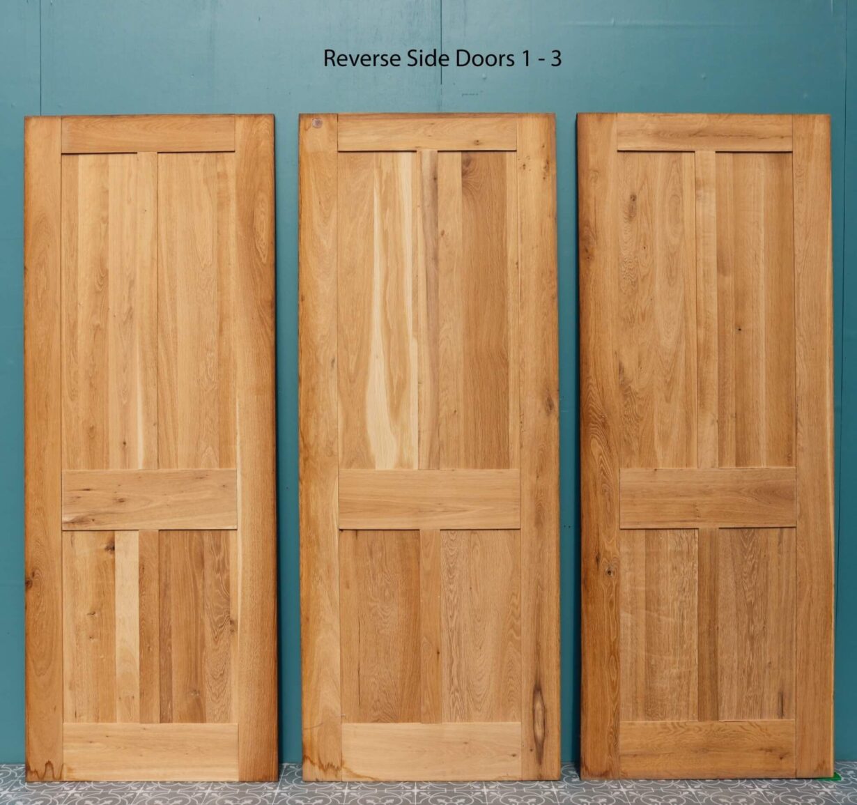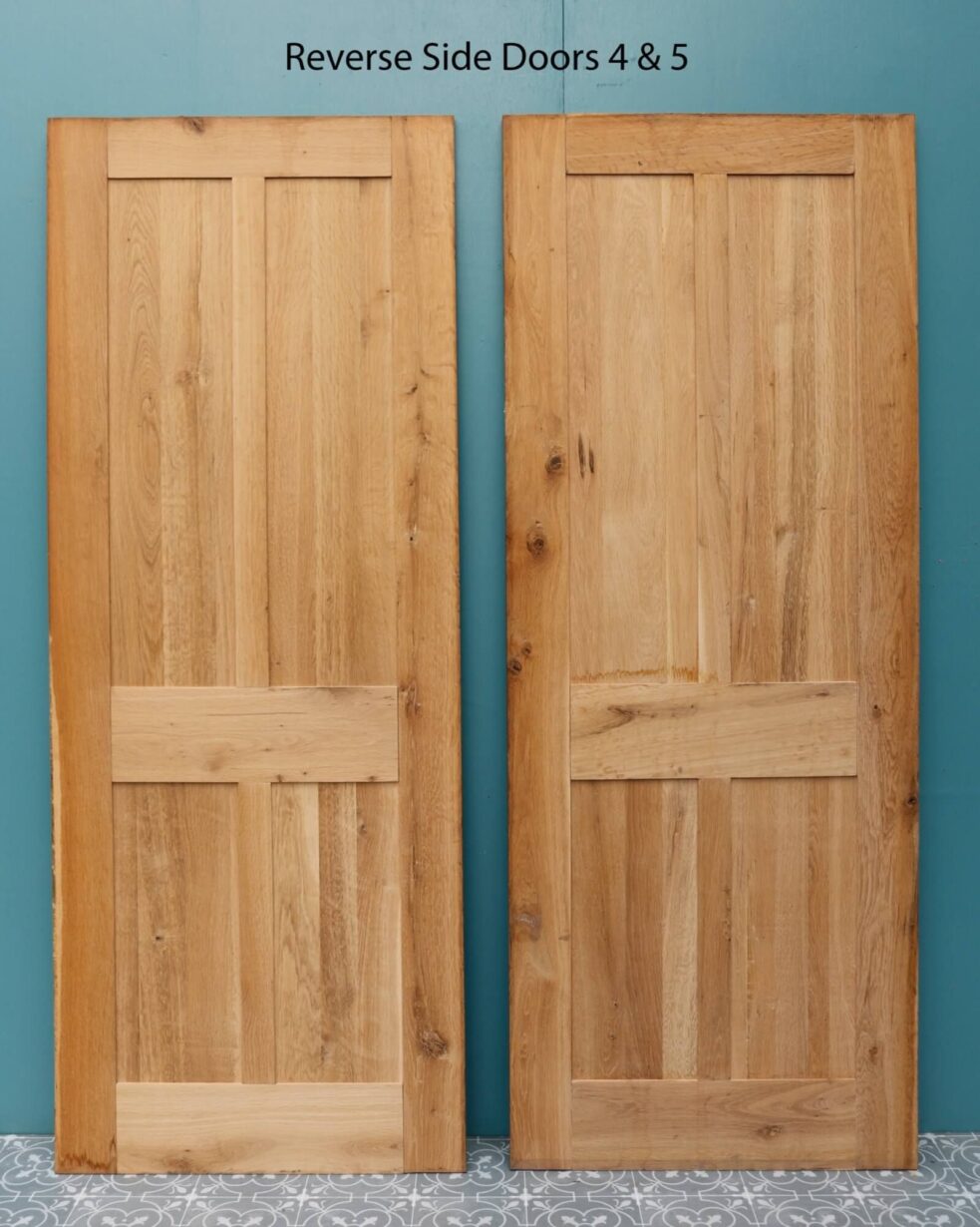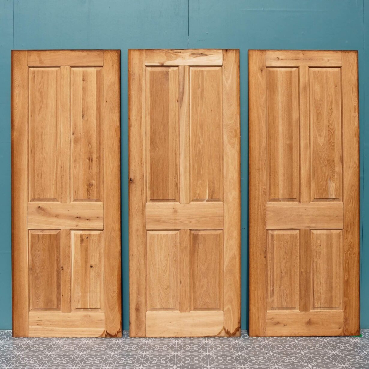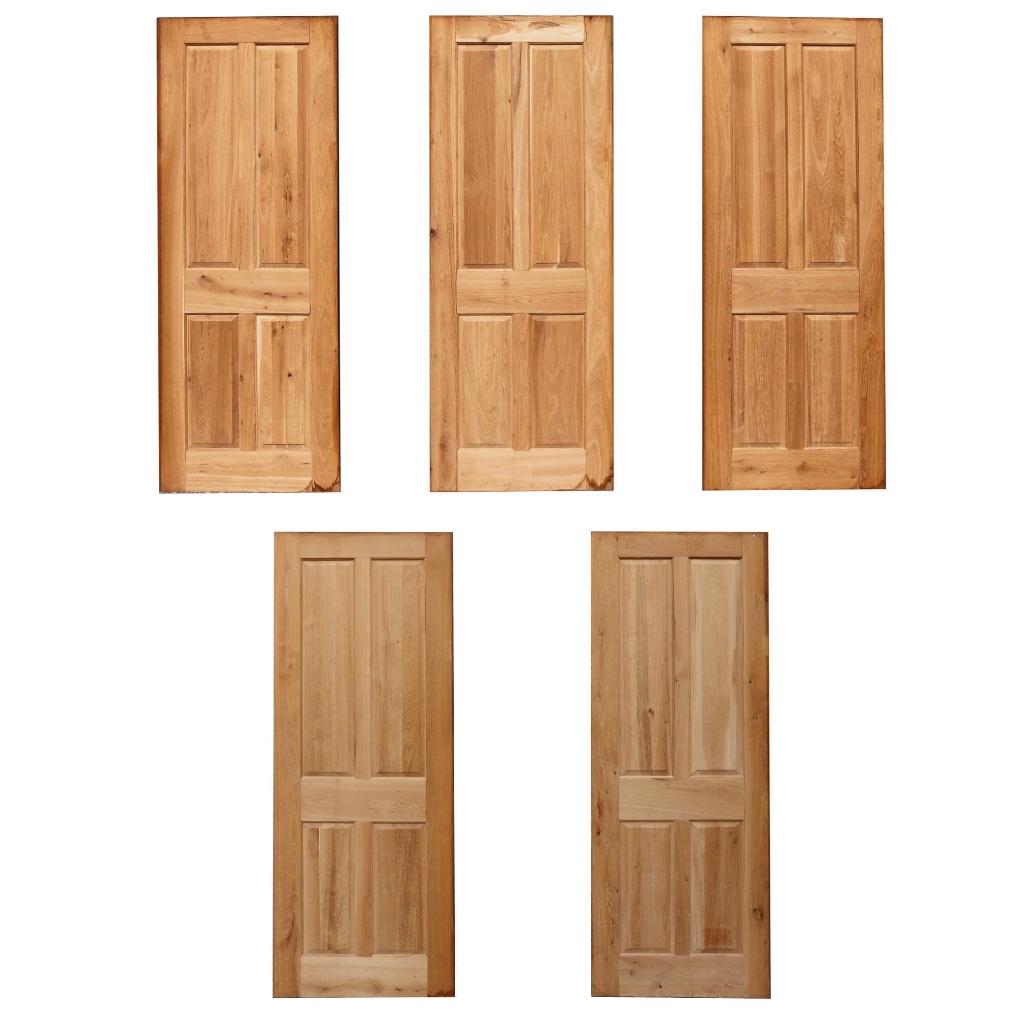 back to topA set of 5 reclaimed 4-panel oak interior doors dating from the early 21st century. Perfect for a restoration project, these 5 doors are made from solid oak with a bare wood finish. They each feature 4 raised and fielded panels to the front and flush panels to the reverse.