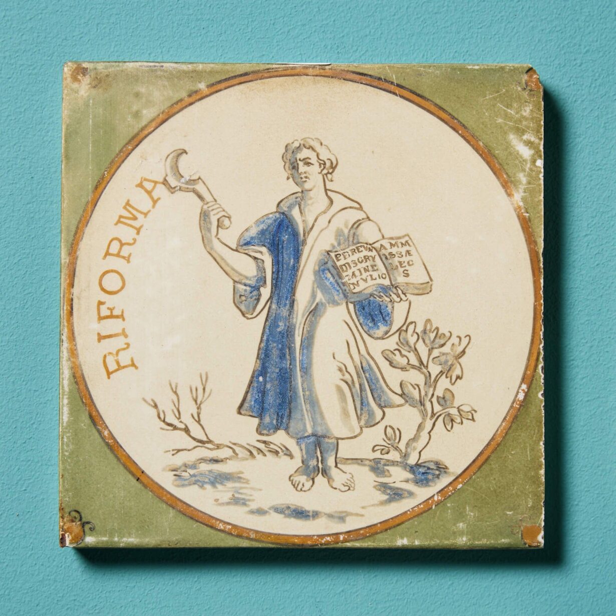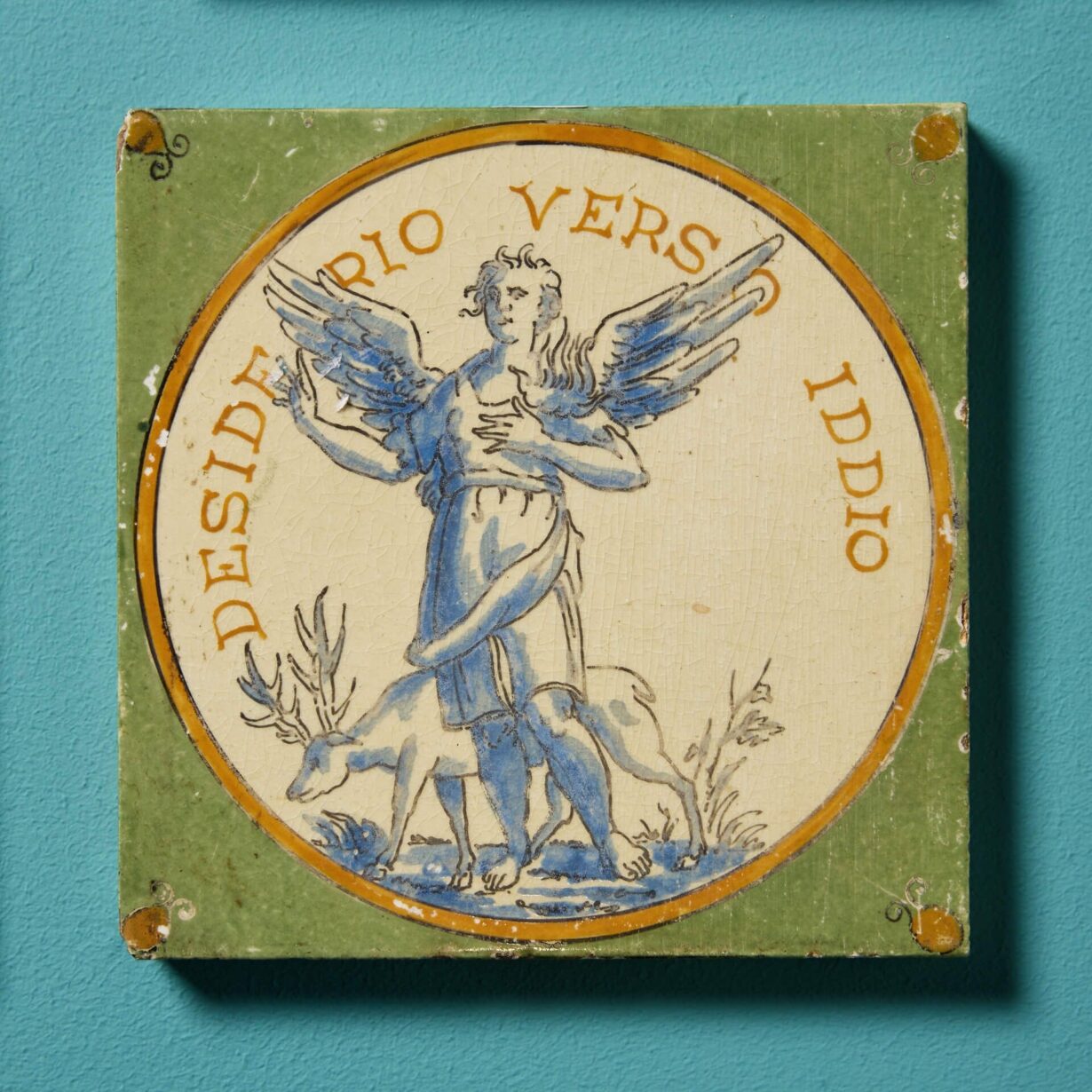An image from Cesare Ripa’s Iconologia can be seen in a central roundel, while the other comprise of sanguigno per l’aria, riforma, castigo, premio, allegrezza and desiderio verso Iddio.