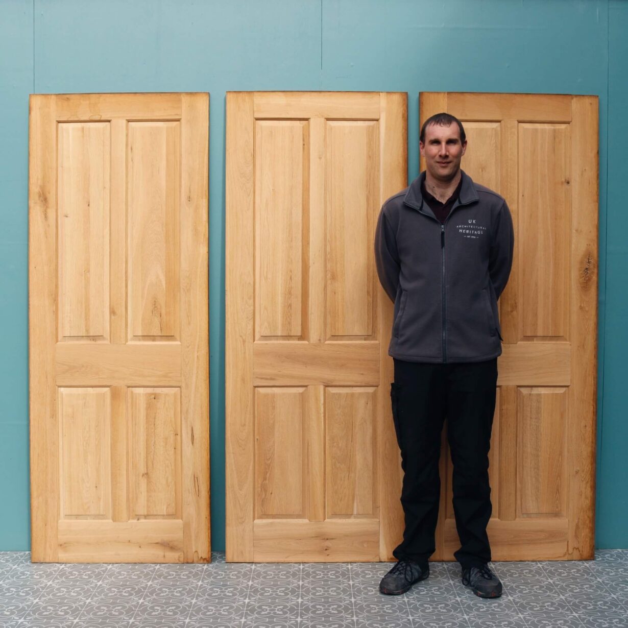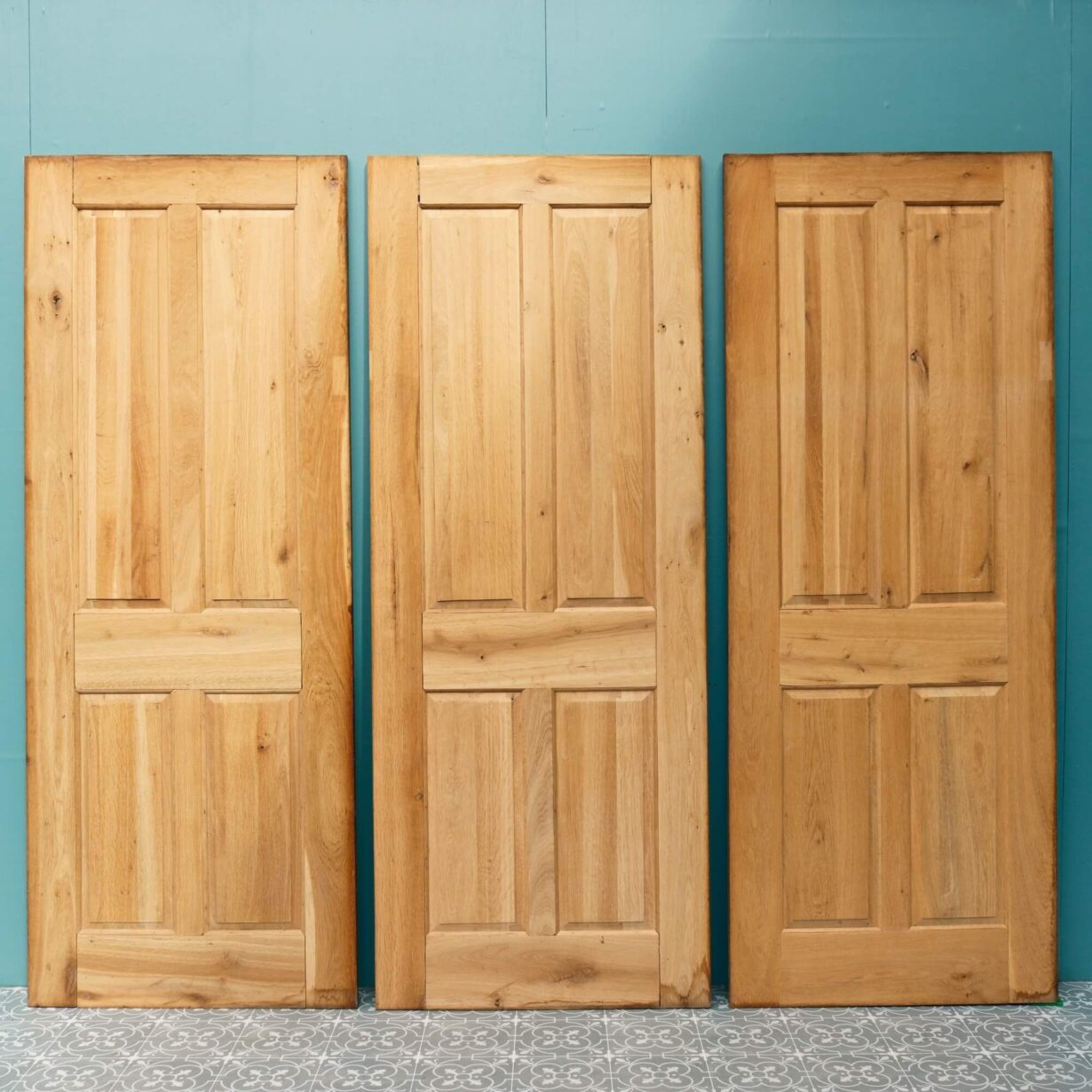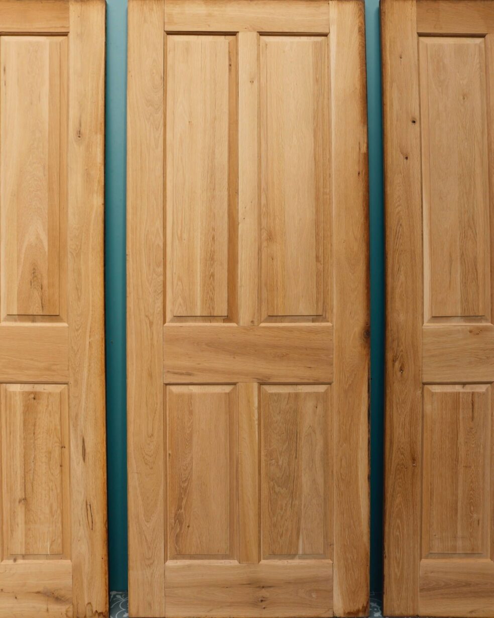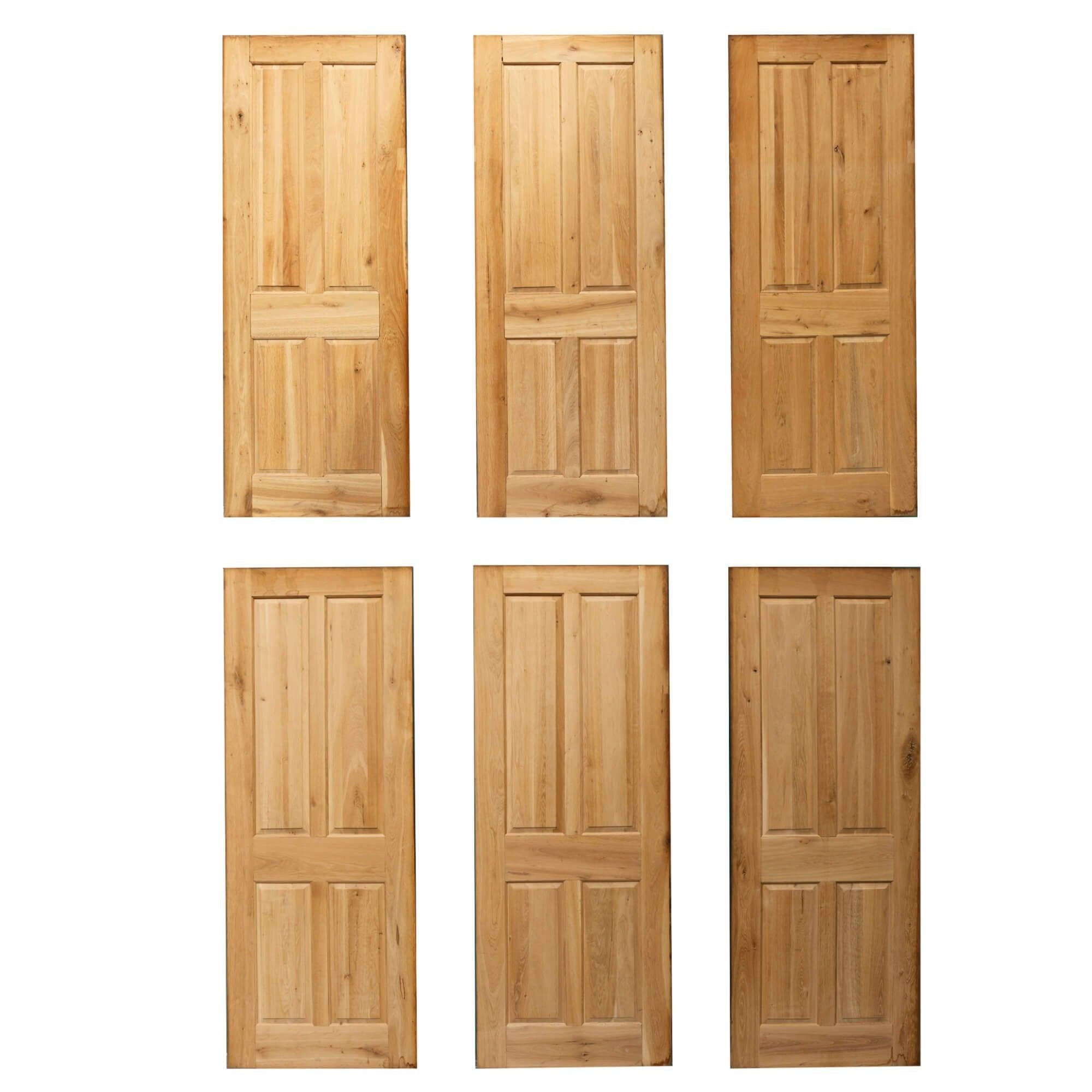 back to topA set of 6 reclaimed 4-panel oak interior doors dating from the early 21st century. Perfect for a restoration project, these 6 doors are made from solid oak with a bare wood finish. They each feature 4 raised and fielded panels to the front and flush panels to the reverse.
