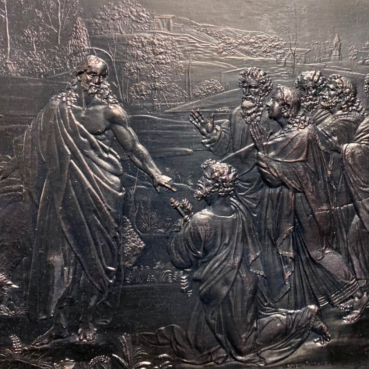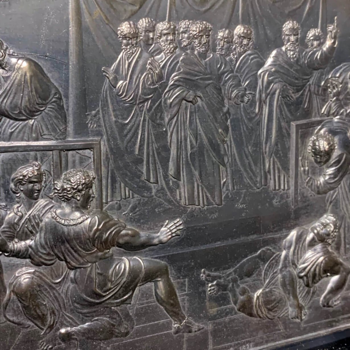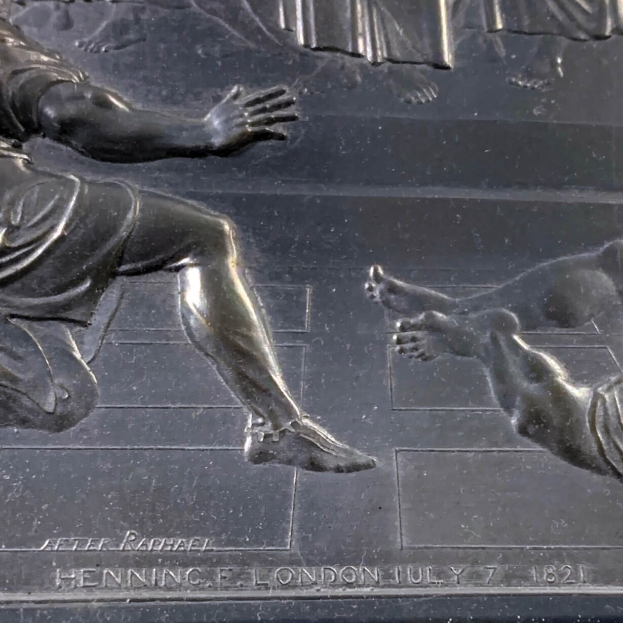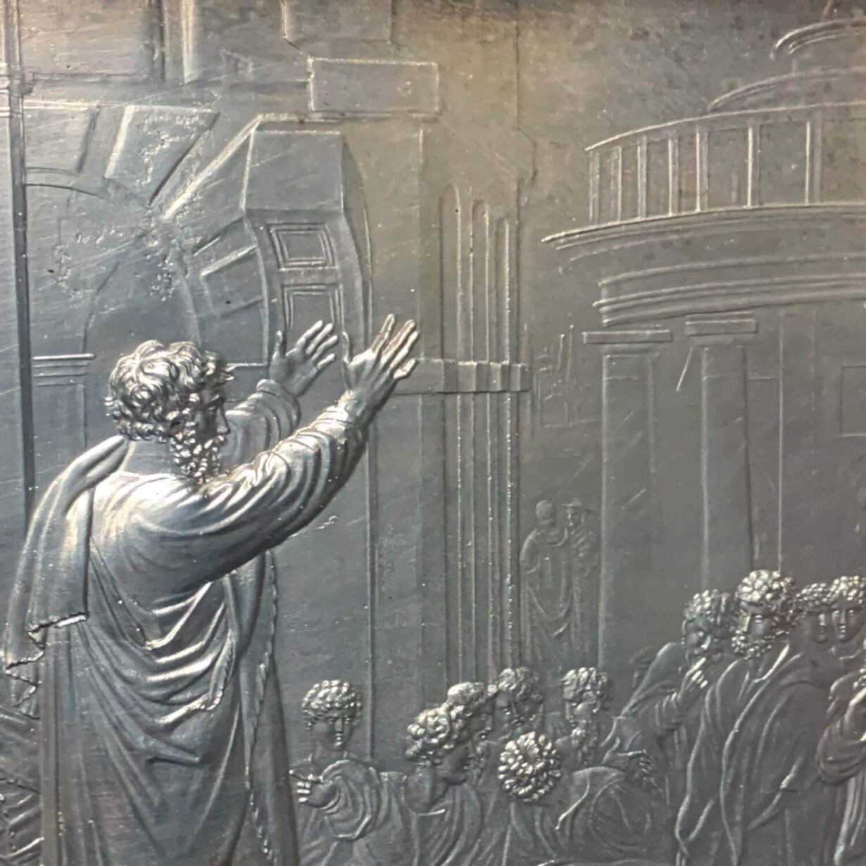 In the early 19th century, Scottish sculptor John F. Henning, regarded most notably for his scale replicas of Greek friezes, recreated the Raphael Cartoons in plaster cast. These scale casts provided inspiration for these silver plate plaques, captured in stunning detail with relief decoration.