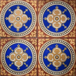 Supplied loose, these 6-inch tiles are antique and as such have a characterful, timeworn look with scuffs and crazing here and there that only enhances the beauty of these striking patterned tiles.