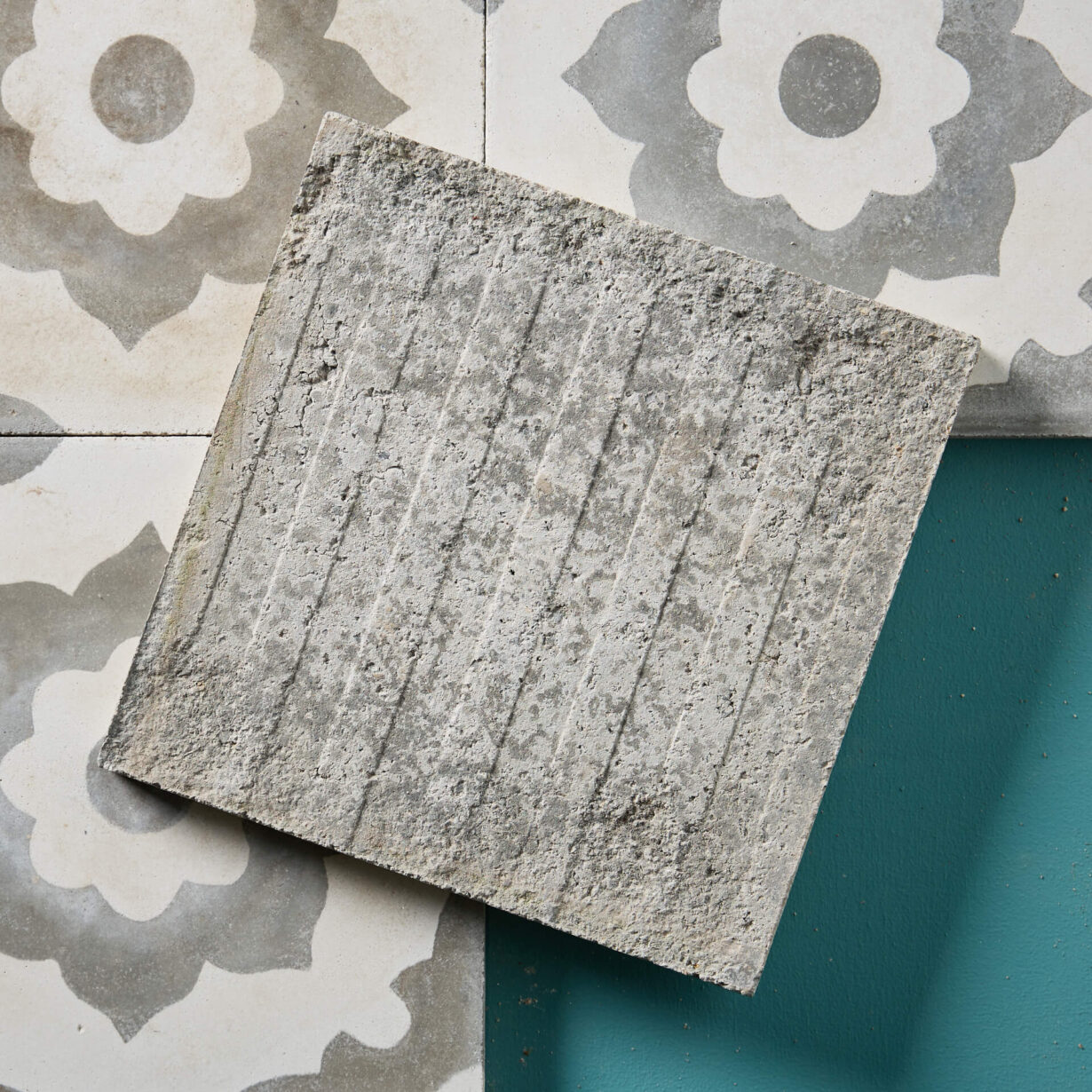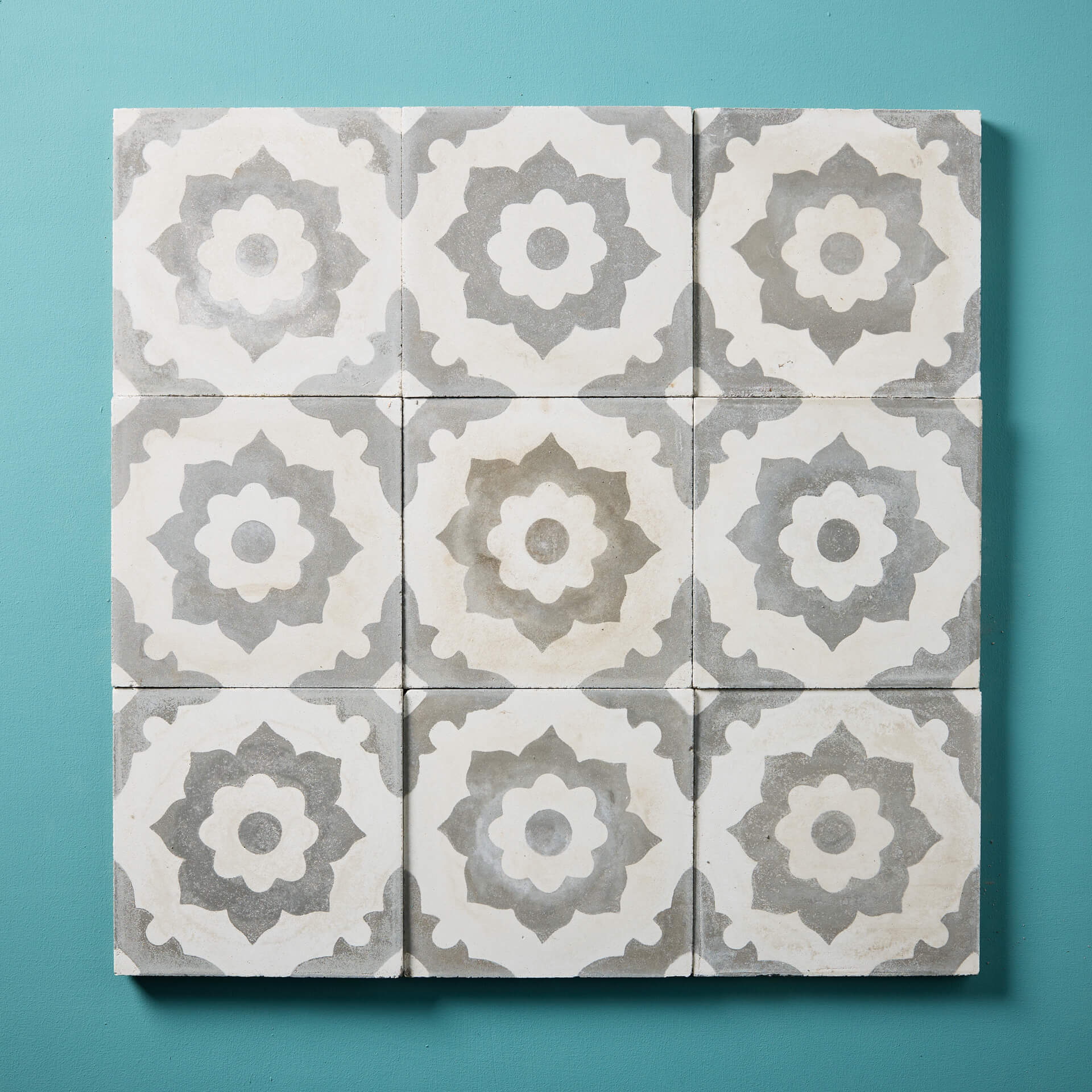 back to topA set of nine reclaimed Spanish floral encaustic floor tiles.