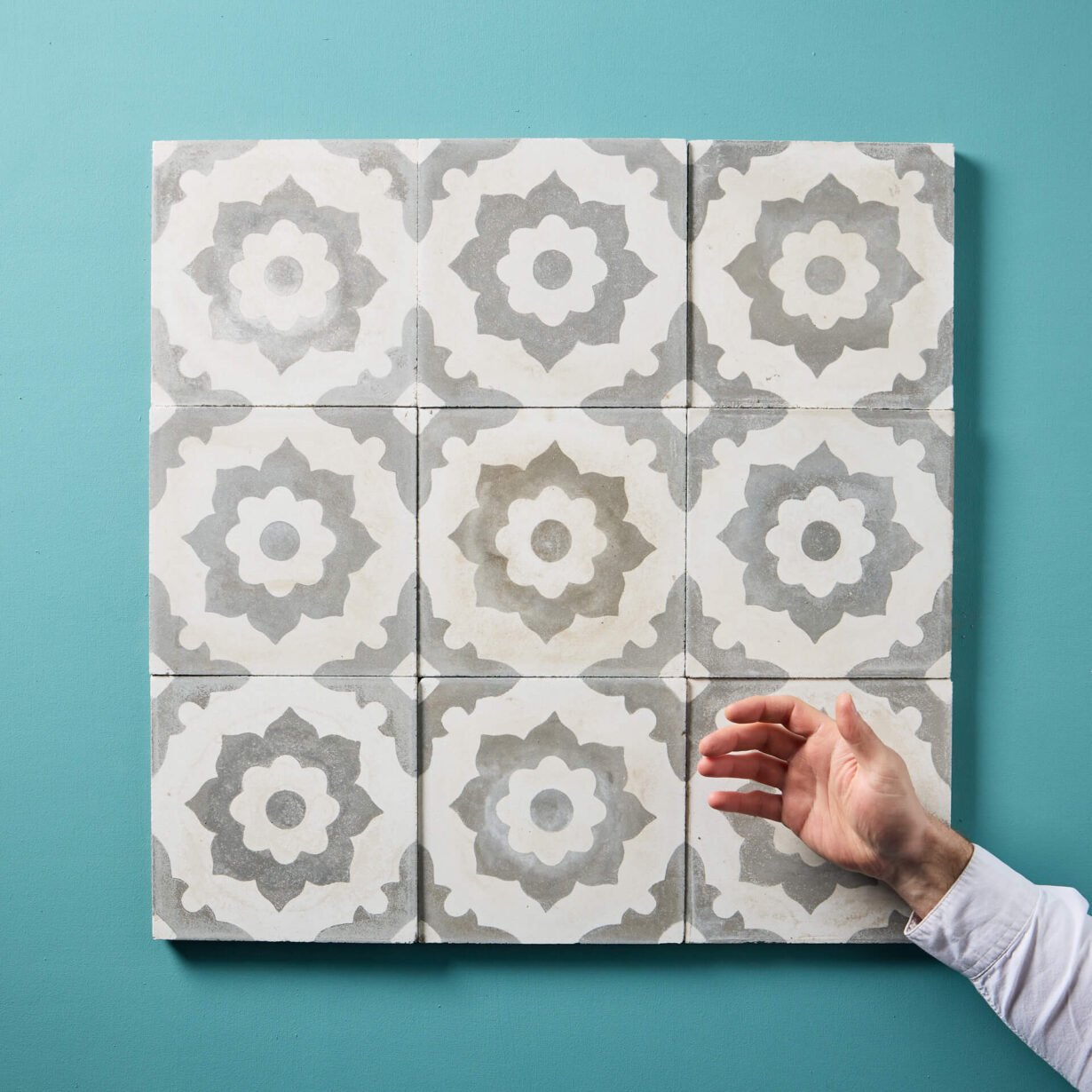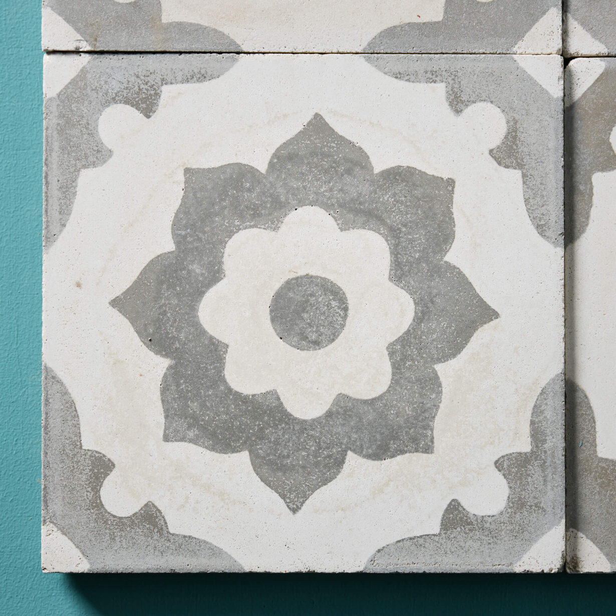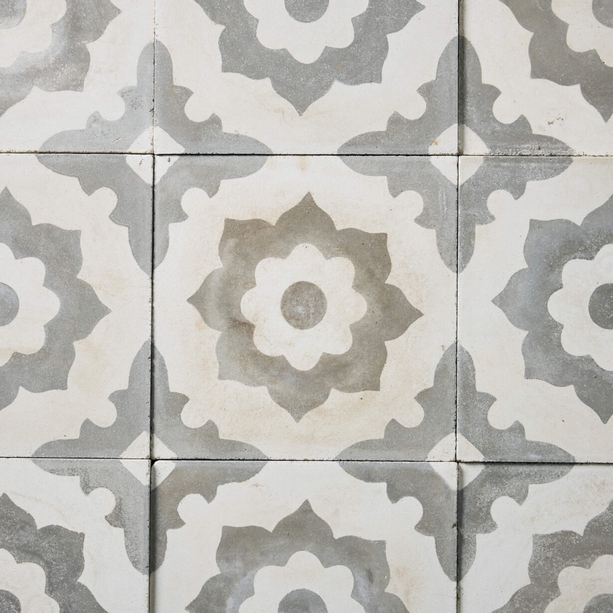 A traditional Moroccan design with a geometric repeating pattern. The mixture of grey and cream allows this tile to blend in with a vast range of styles, modern and traditional.