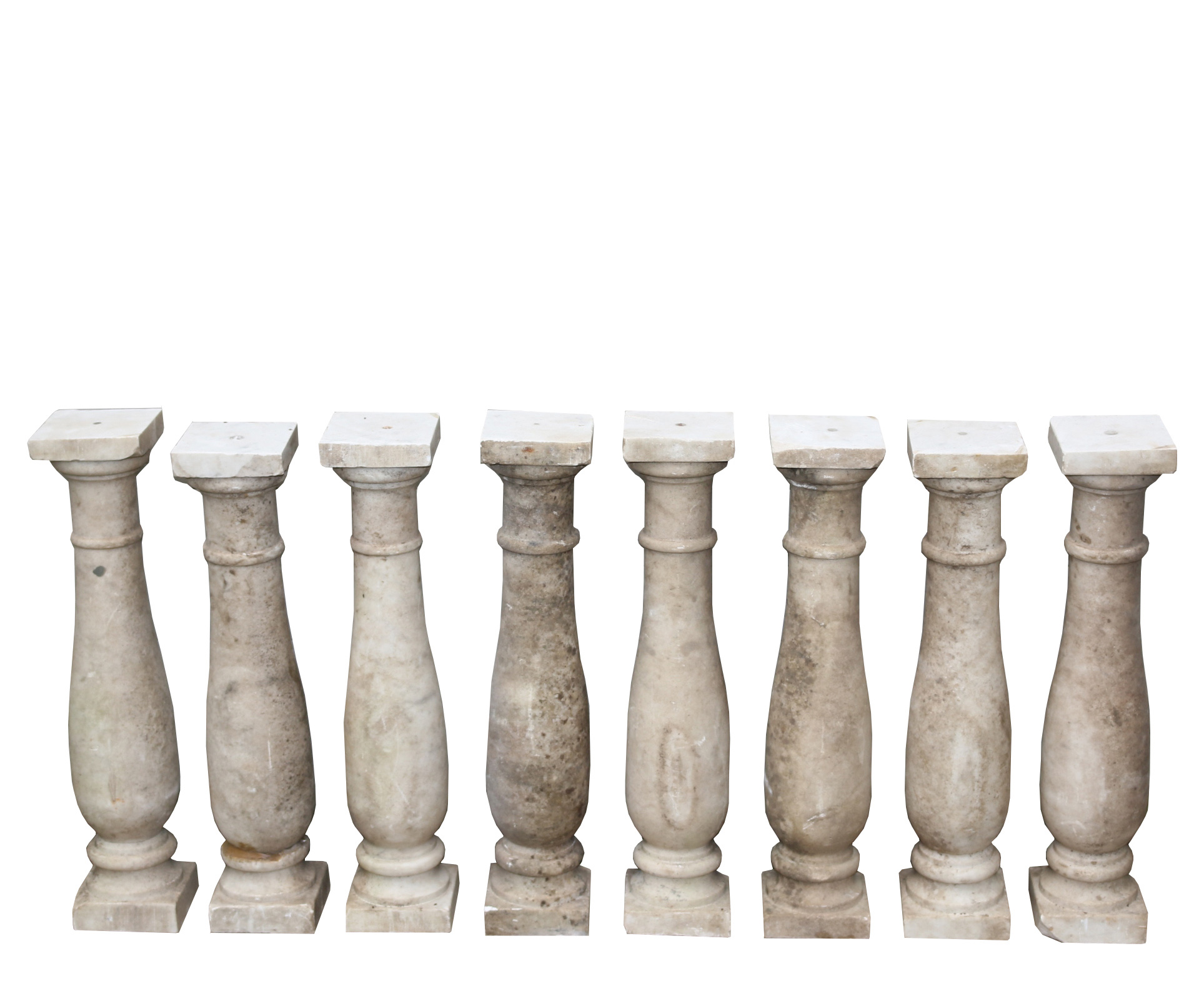 Eight reclaimed antique Carrara marble balustrade pieces.