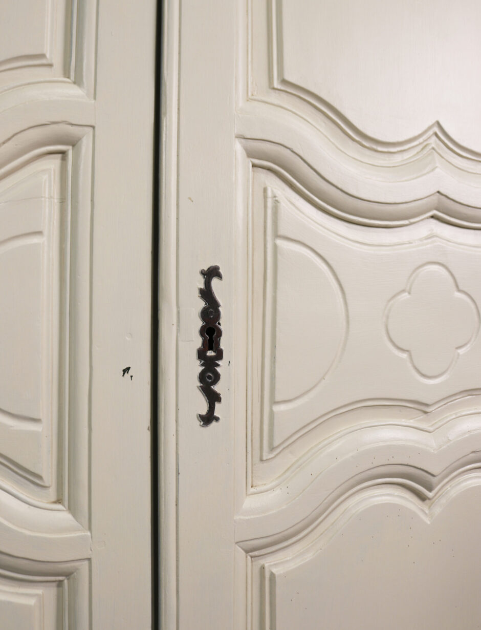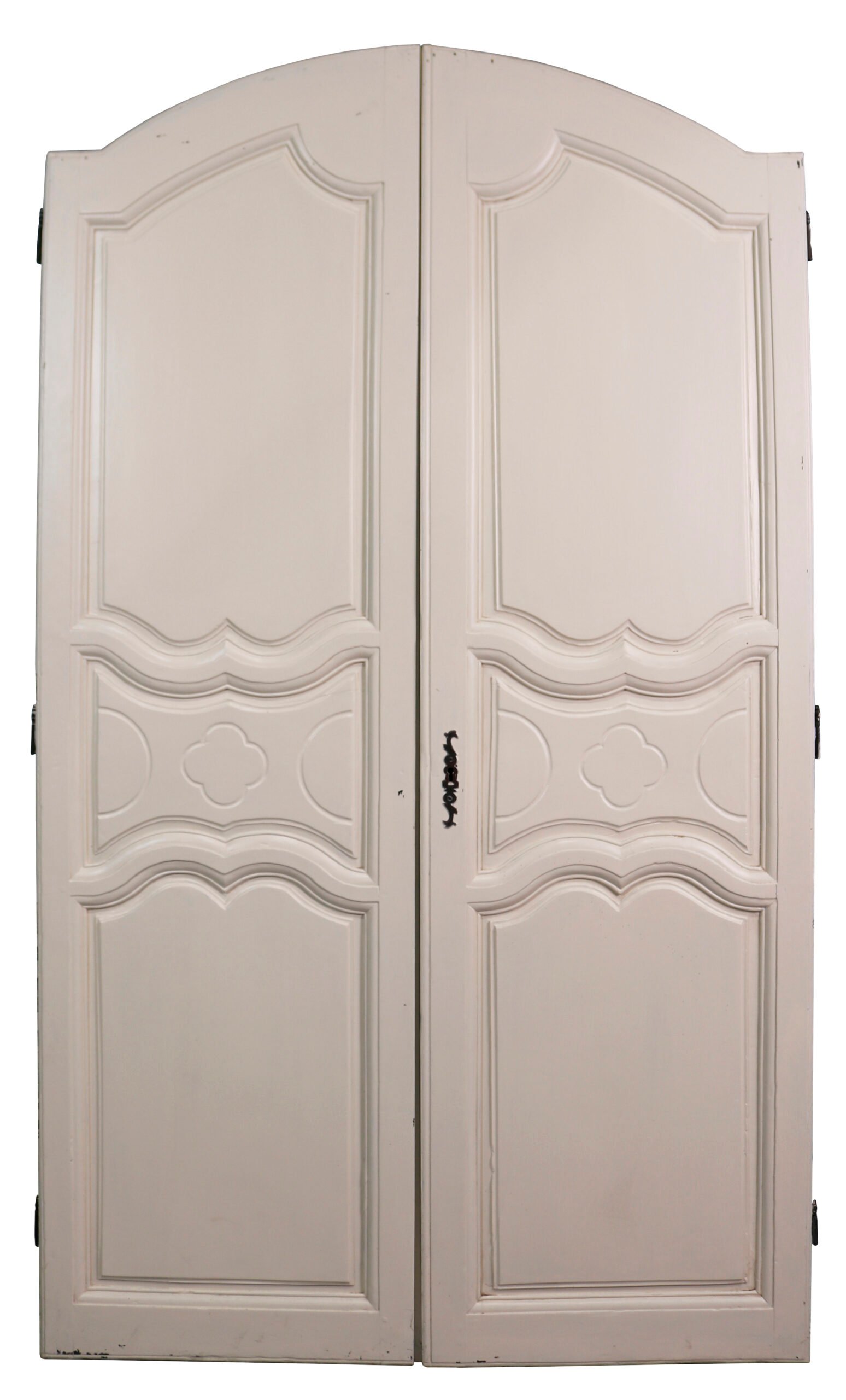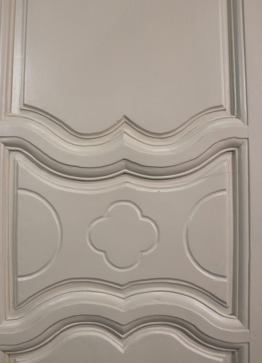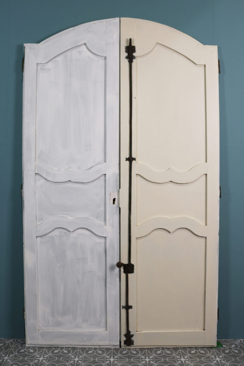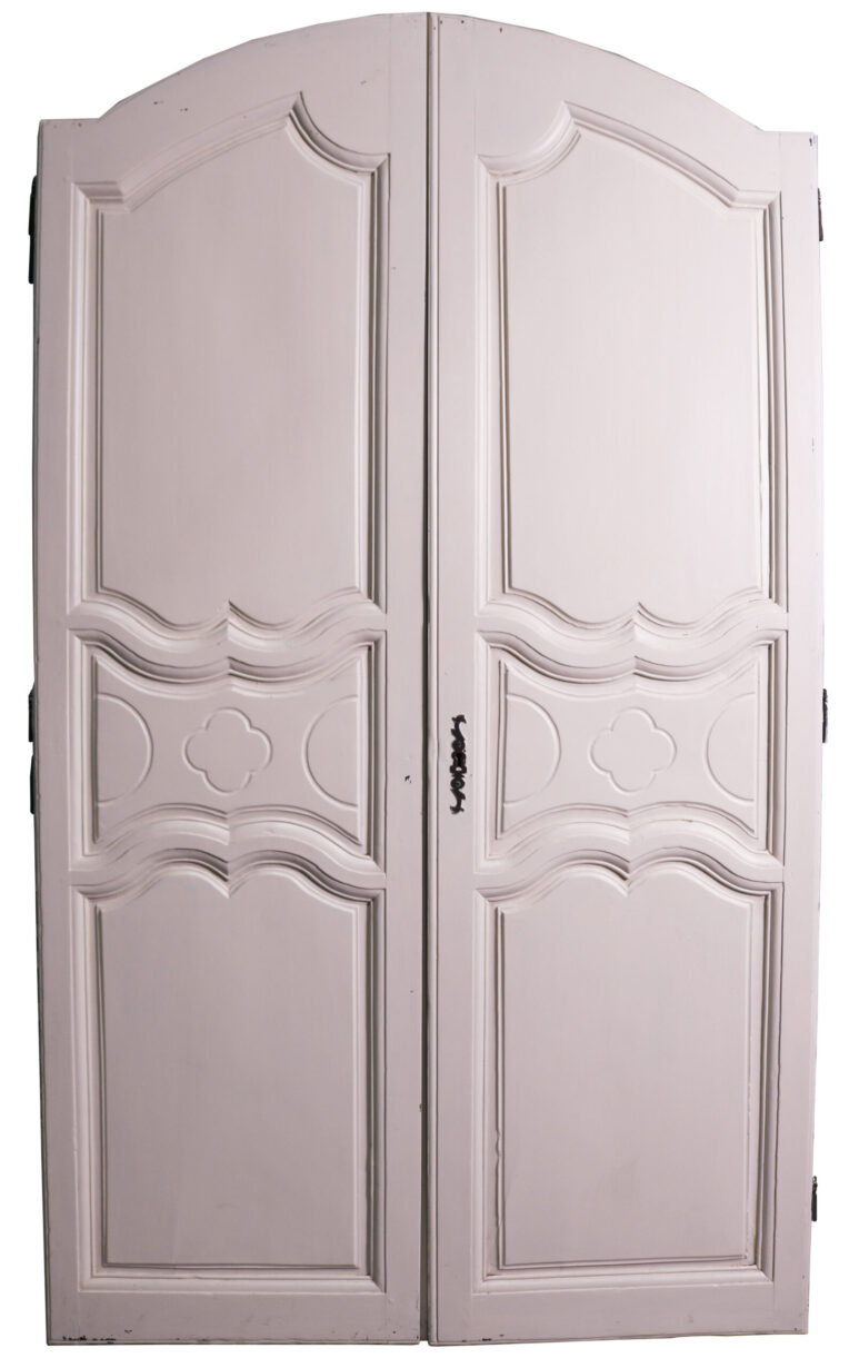 back to topSet of Painted French Cupboard Doors. A pair of beautifully carved, small French doors with a decorative escutcheon plate.