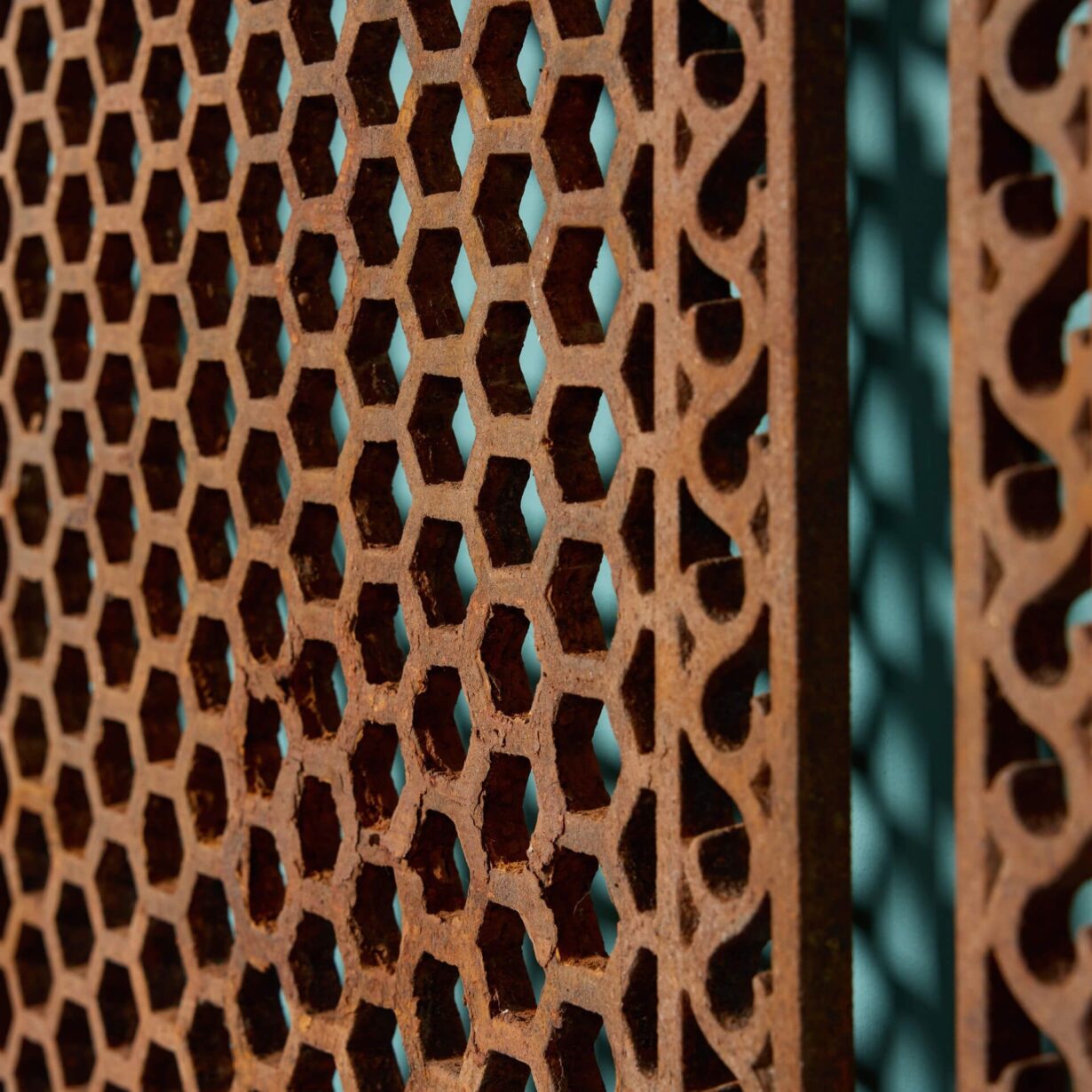 Dating to circa 1870, these unusually large sized grids are an ode to the fine craftsmanship of their 19th century foundry.