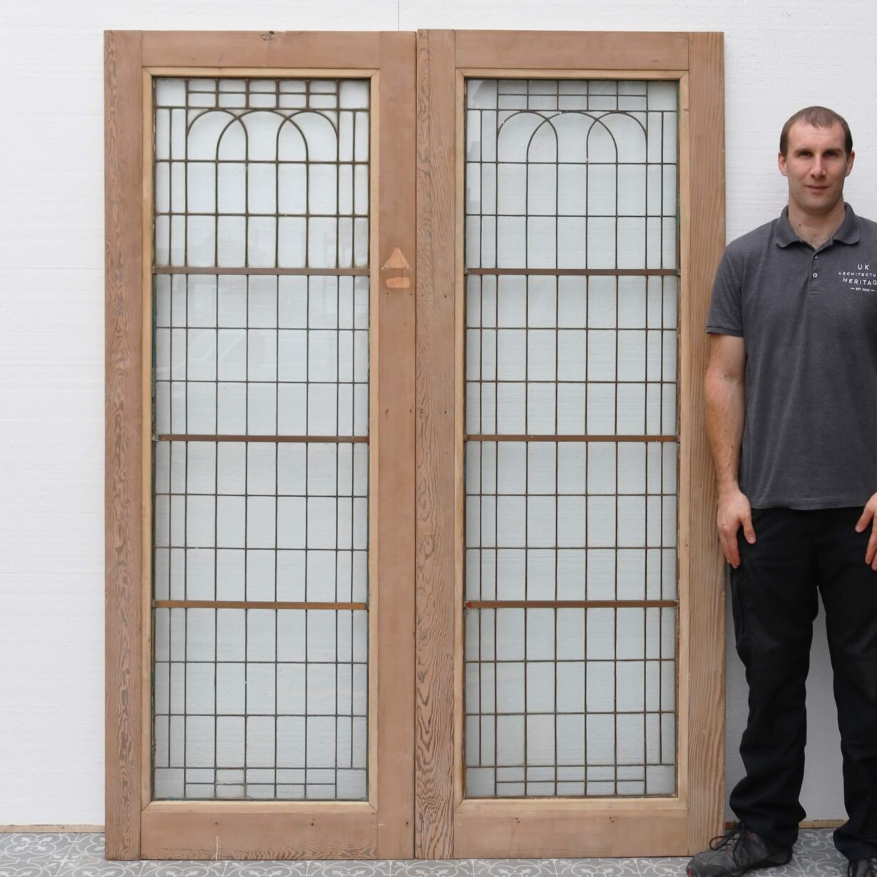 back to topBring the understated glamour of the Art Deco era to a property with this stylish set of 1920s internal double doors. Each door features full length copperlight glazing within a stripped and sanded pine wood frame with a natural finish. They make a beautiful pair of dividing doors, letting light flow through the glass from room to room to instil an interior with a spacious feel. These Art Deco double doors are a handsome addition to properties old and new.