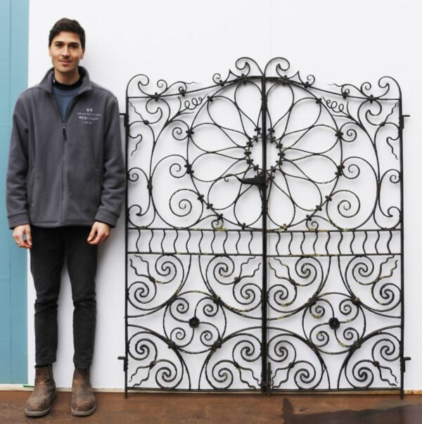 back to topA beautiful set of early 20th century reclaimed garden gates detailed with ornate scrollwork. Originating from France, this is one of two matching sets we have for sale.