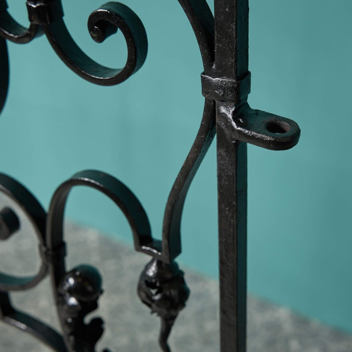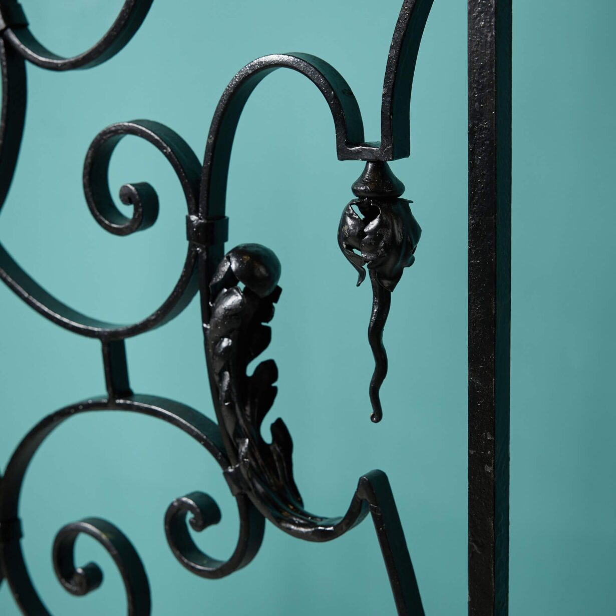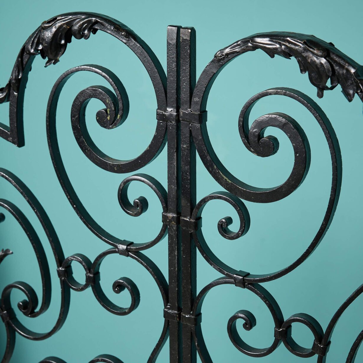 These French pedestrian gates are in good condition, supplied with all hinge components ready for hanging in your garden. Elegantly handcrafted from durable wrought iron, these gates are to be celebrated for their fine scrollwork and leaf details, making a stunning feature of any space, old or new.