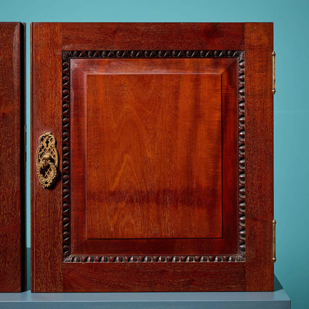 Expertly made, these cabinet doors are in excellent condition, the finish and joinery a testament to the skills of their maker. Each door is made from solid mahogany with a raised and fielded panel to the front, accentuated by egg and dart moulding.