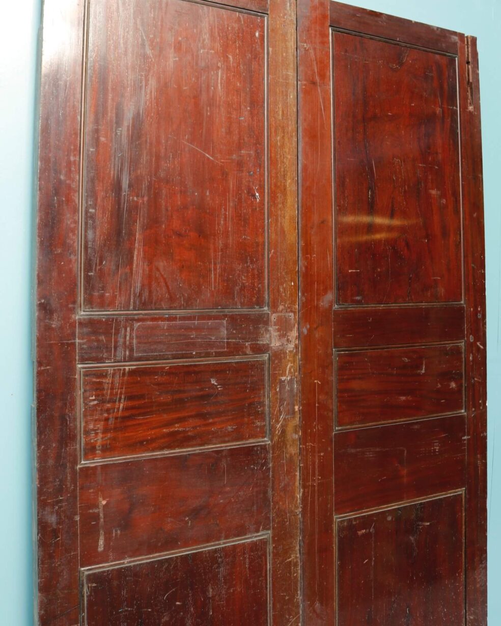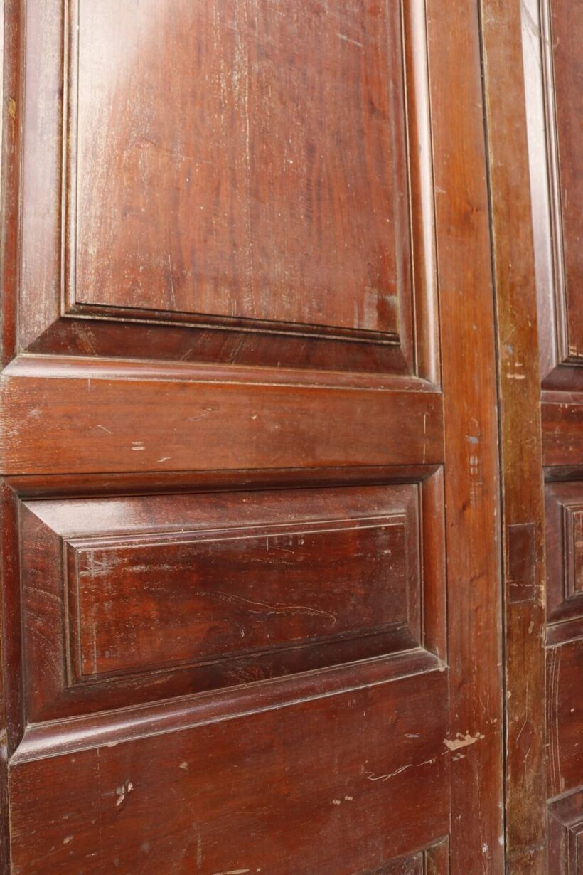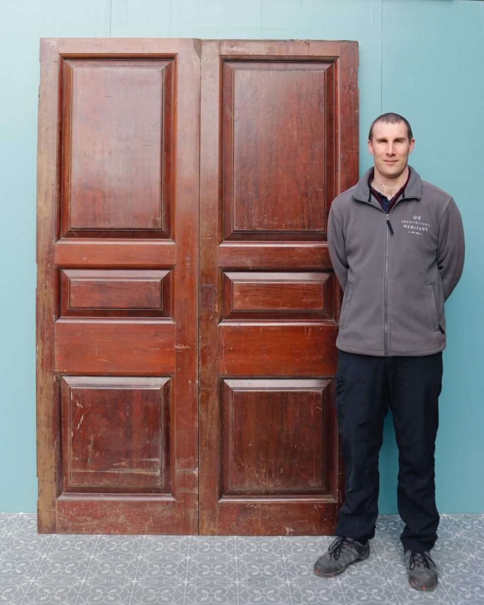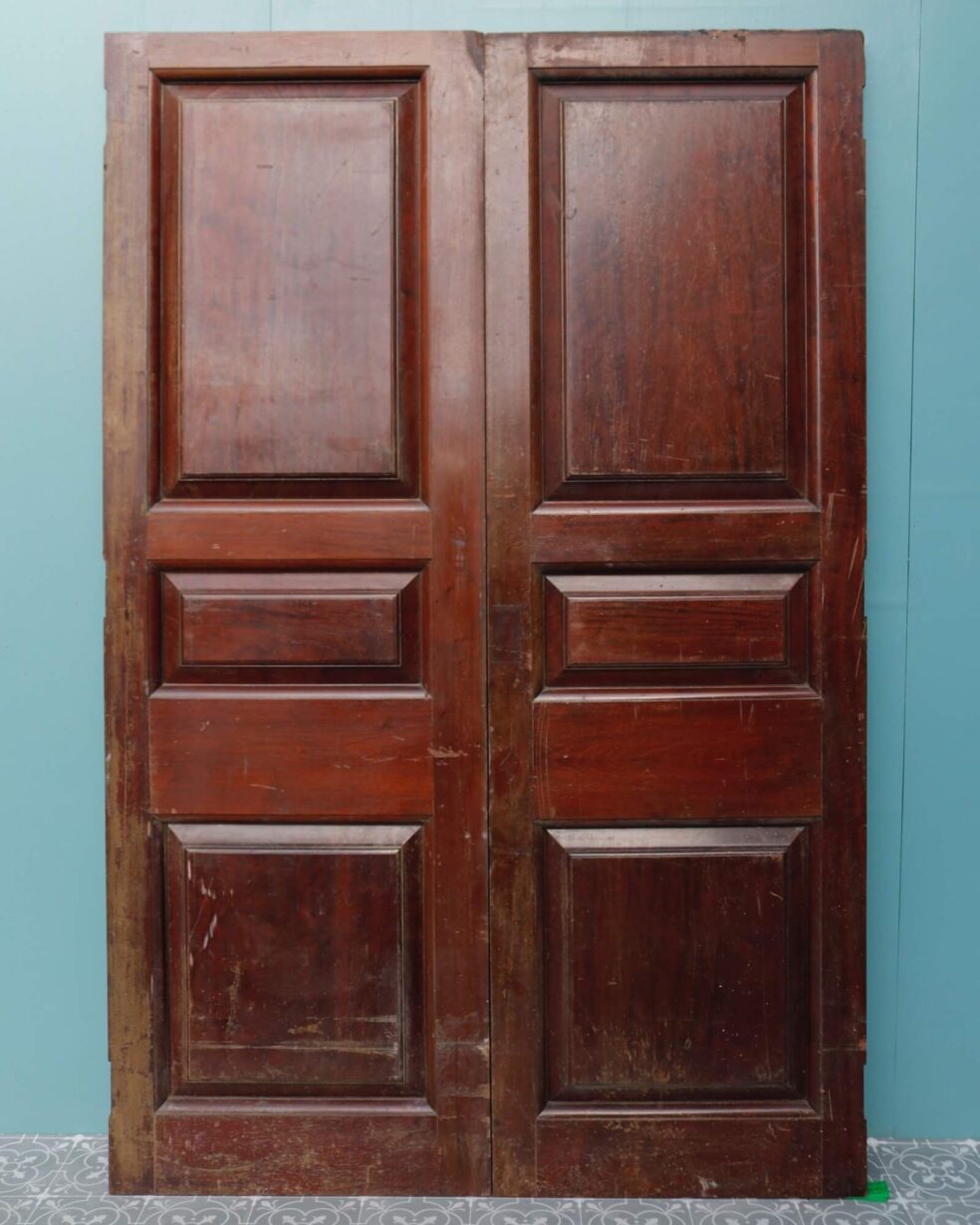 back to topA set of late 19th century English Victorian double doors suitable for interior use with 6 raised and fielded panels to the front side. Made from mahogany and teak woods, these antique double doors have a rich mahogany colour that’ll bring beauty and sophistication to any interior setting. Dating from circa 1880, these double doors are a timeless addition to interiors old and new, making a particularly striking set of dividing doors in a reception room or study.