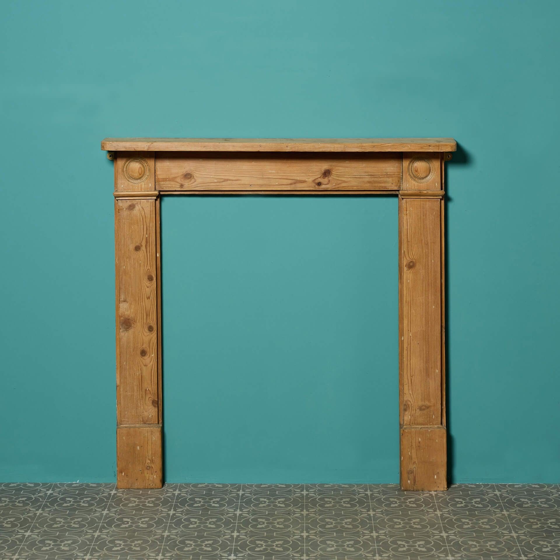 Small Georgian Bulls-Eye Fireplace. A late Georgian Bulls-eye style fire surround in Pine. Additional Dimensions Opening height 92 cm Opening width 76 cm Across the foot blocks 104 cm
