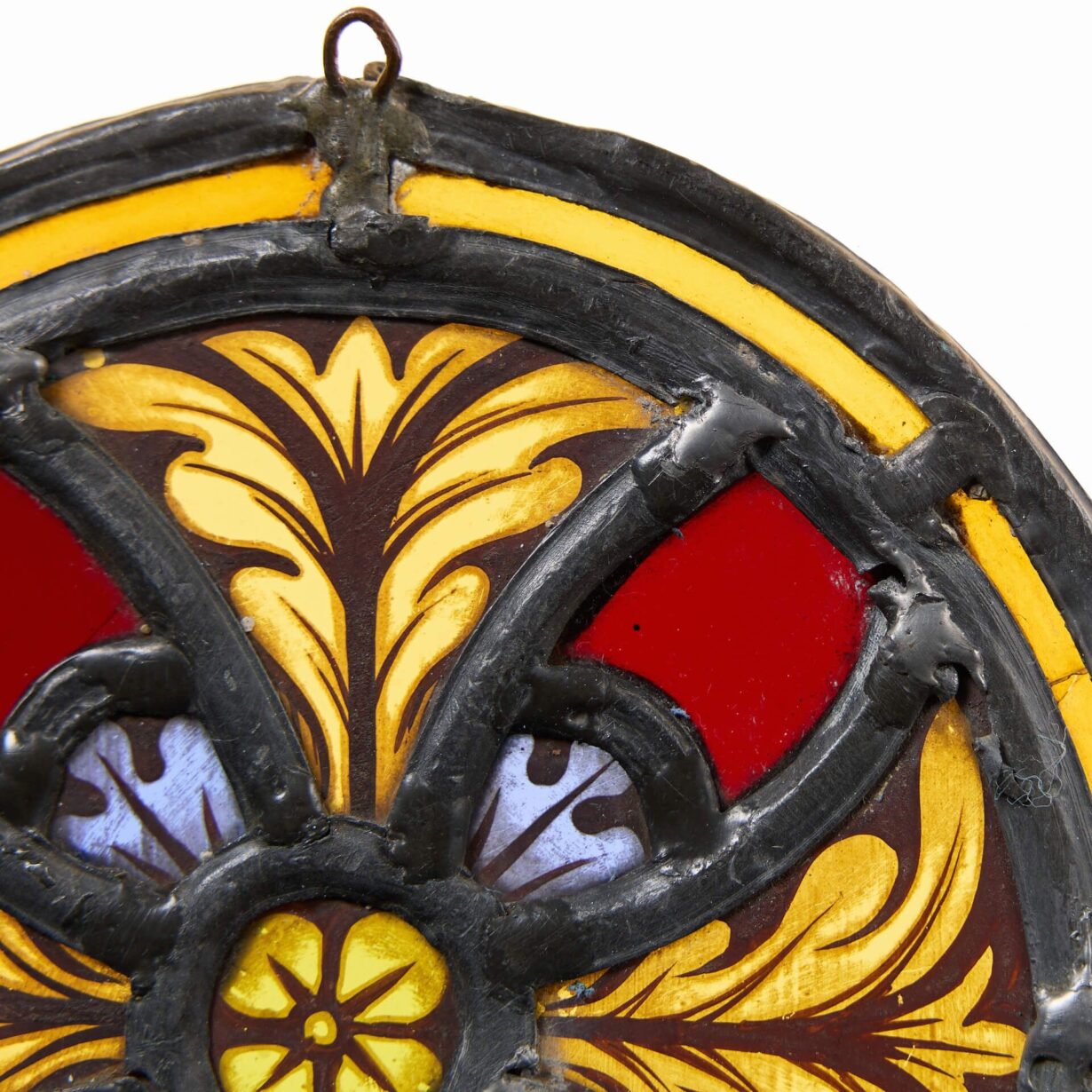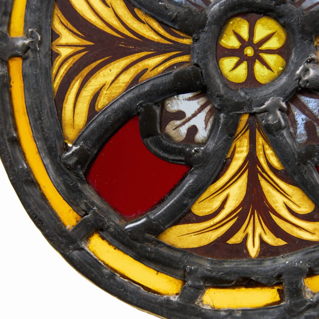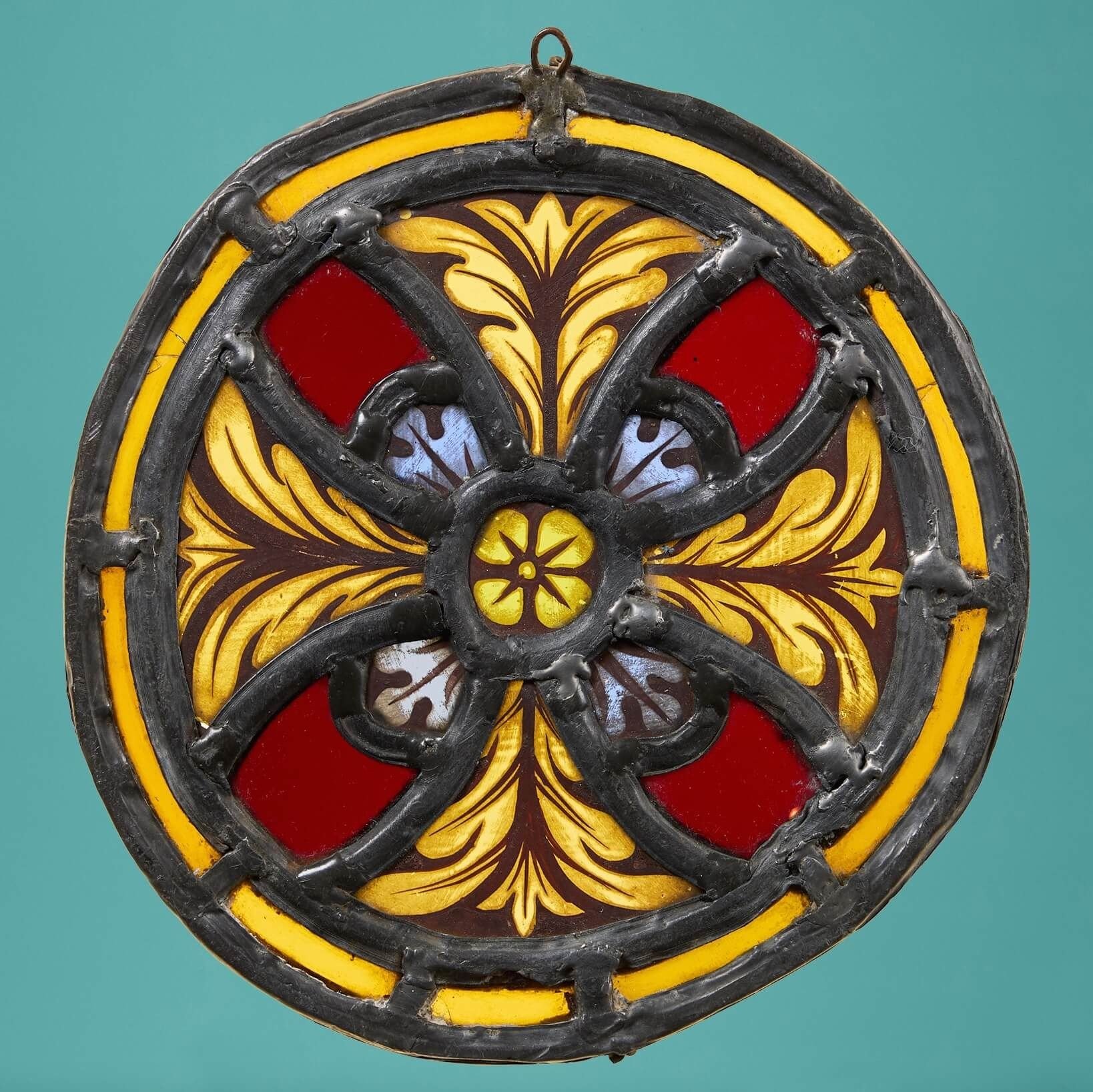 back to topAn antique Victorian late 19th century stained glass panel roundel.