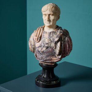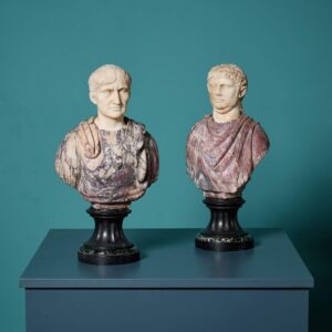 back to topA pair of mid 18th century Italian marble busts depicting the Roman Emperors Augustus and Nero.