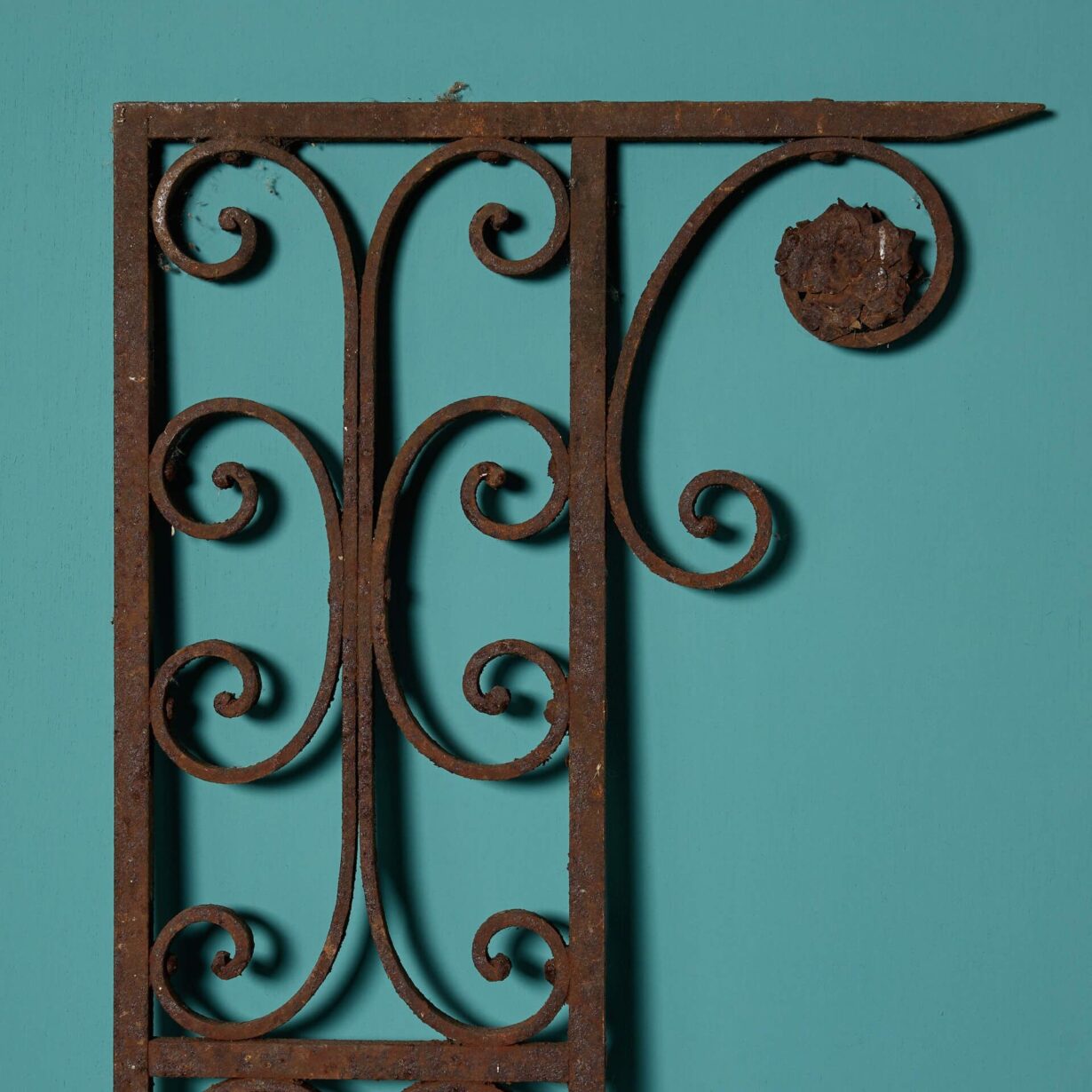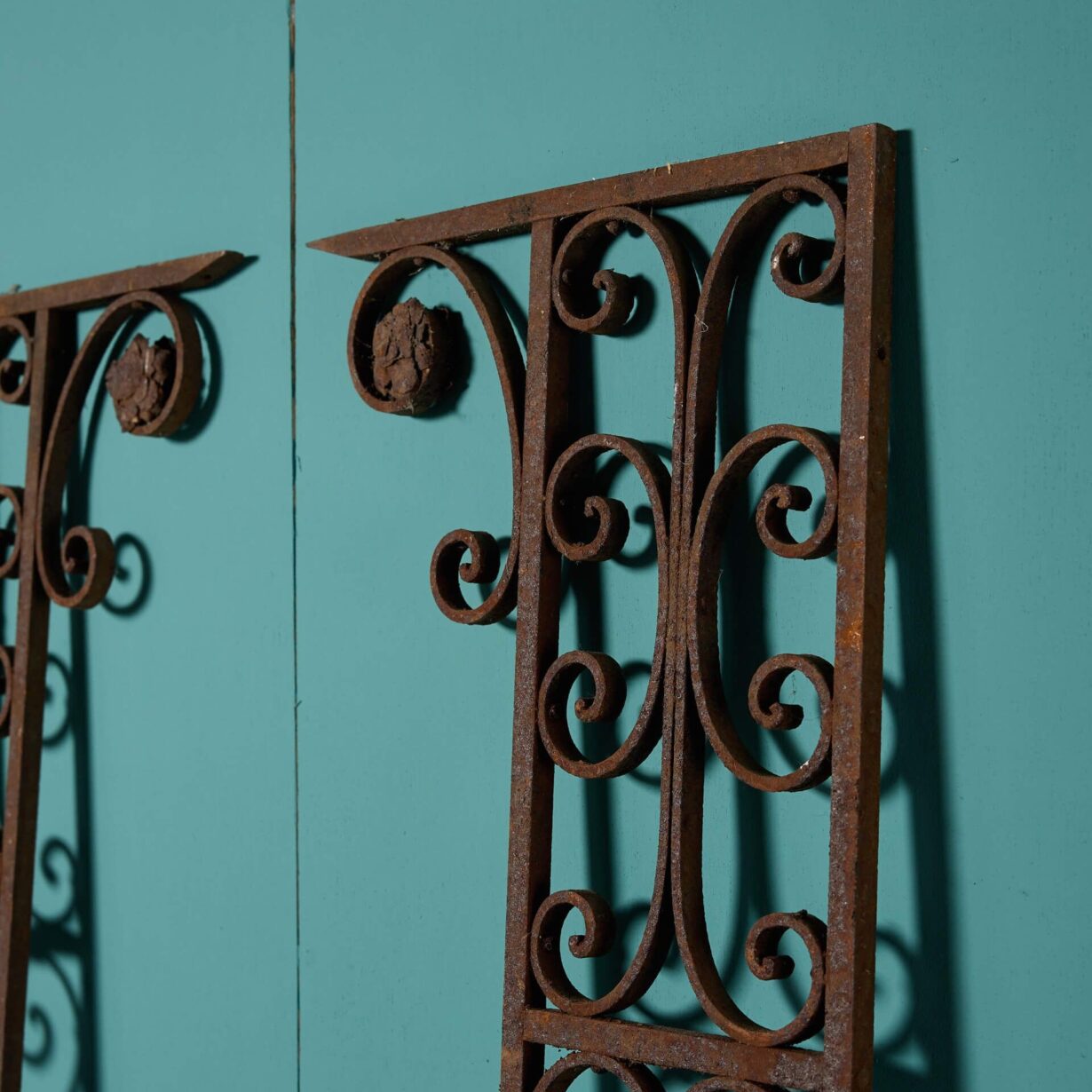 back to topA pair of antique wrought iron panels, previously forming the frame for a garden gate. Traditionally-made by a 19th century blacksmith, these reclaimed wrought iron panels could be used for a number of decorative purposes inside or out, or could be paired with an overthrow to make a gate frame.