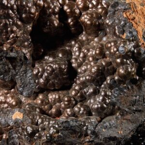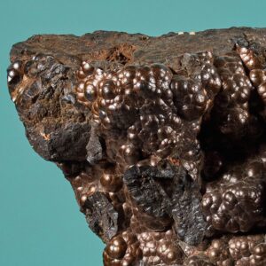 Hematite is the most important iron ore; in fact, iron makes up 70% of its composition. Its appearance can vary greatly, occurring in many natural forms including crystalline and fibrous. This specimen is an excellent example of the botryoidal form, characterised by its clustered, grape-like formations with rounded, bulbous shapes. Colours of hematite can vary from a very dark black to reddish-brown, this specimen showcasing a distinctive dark brown hue.