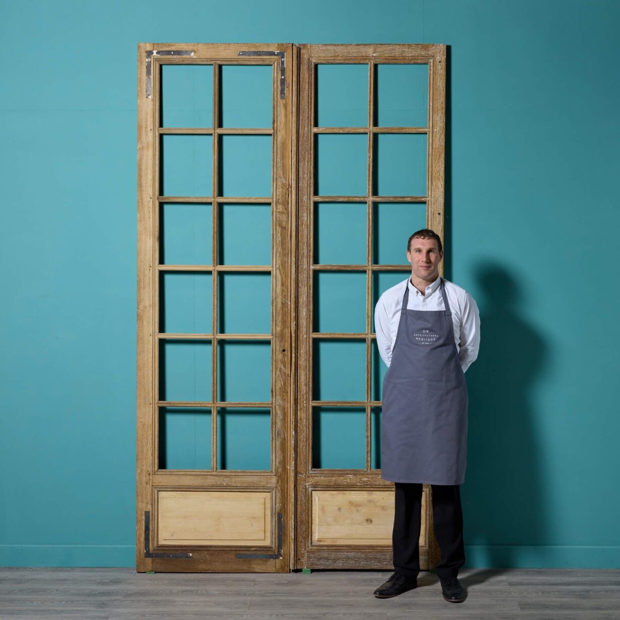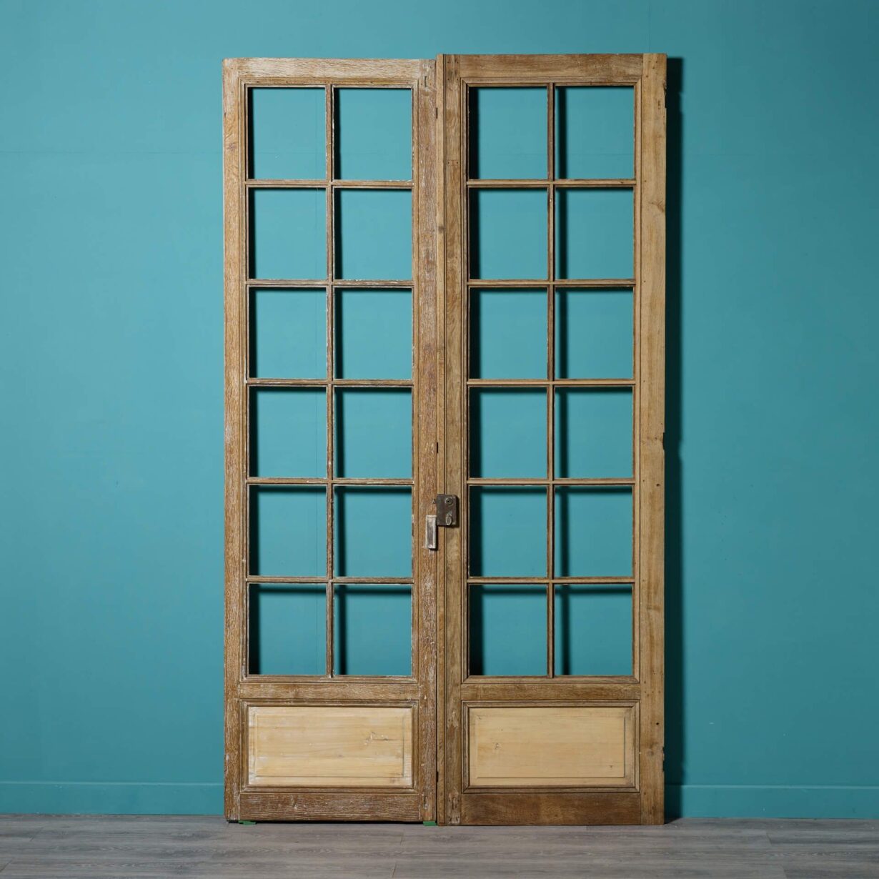 back to topA very tall set of unglazed antique oak doors, suitable for interior use. Dating from the early 20th century, these elegantly high double doors will look stunning fitted with glass, making a striking set of room dividing doors in the halls of a grand townhouse or spacious modern home.