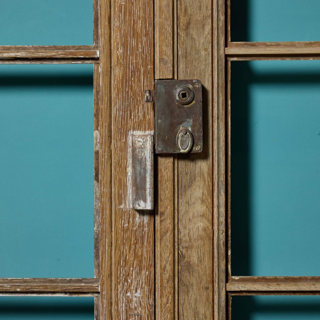 Each door is constructed in oak with matching glazing bars and walnut panels to the base on both sides.