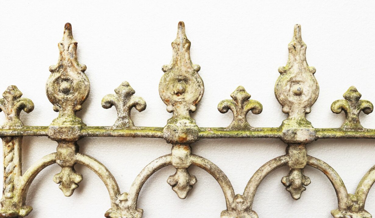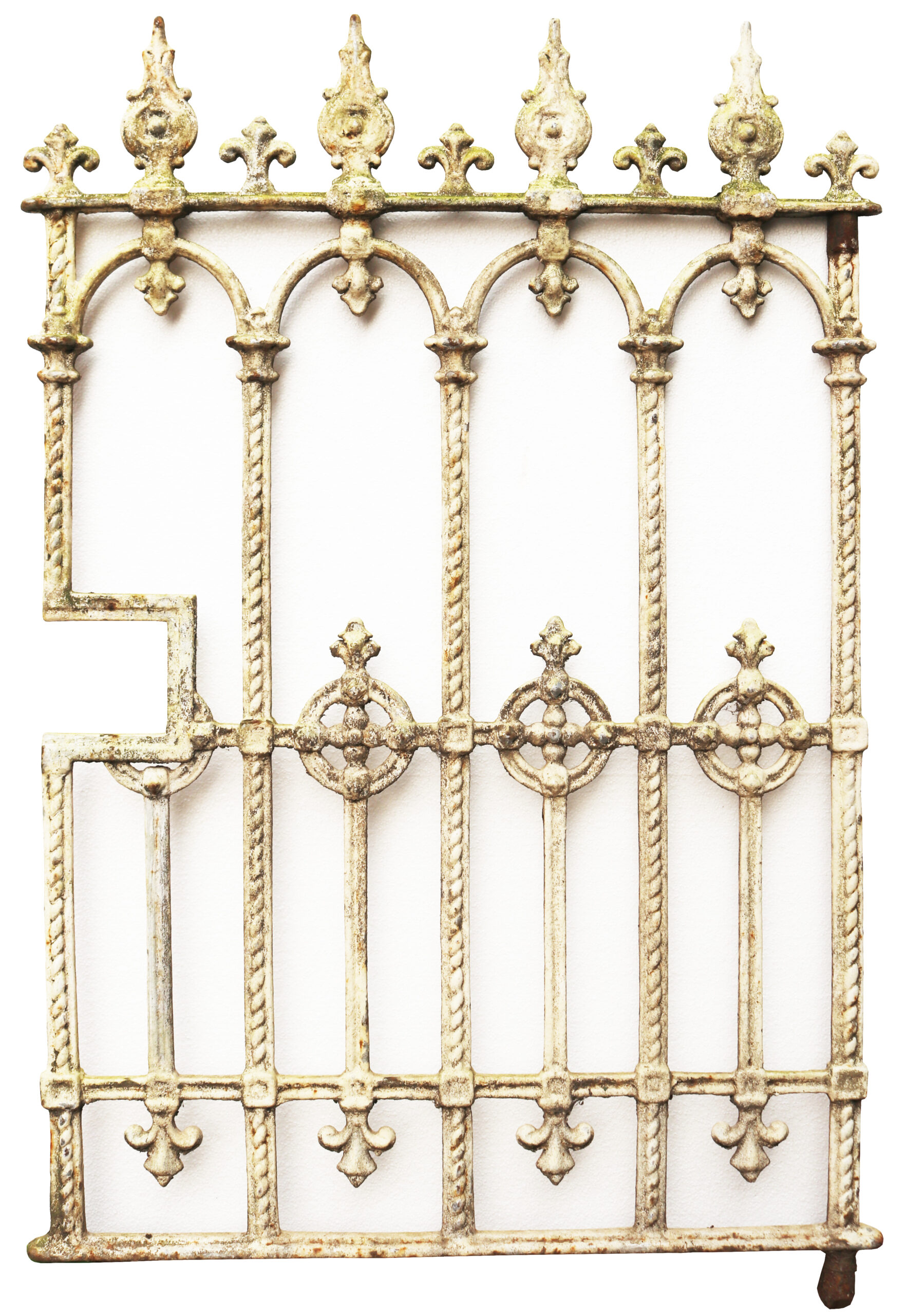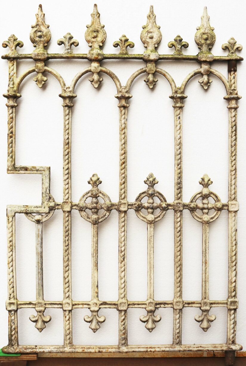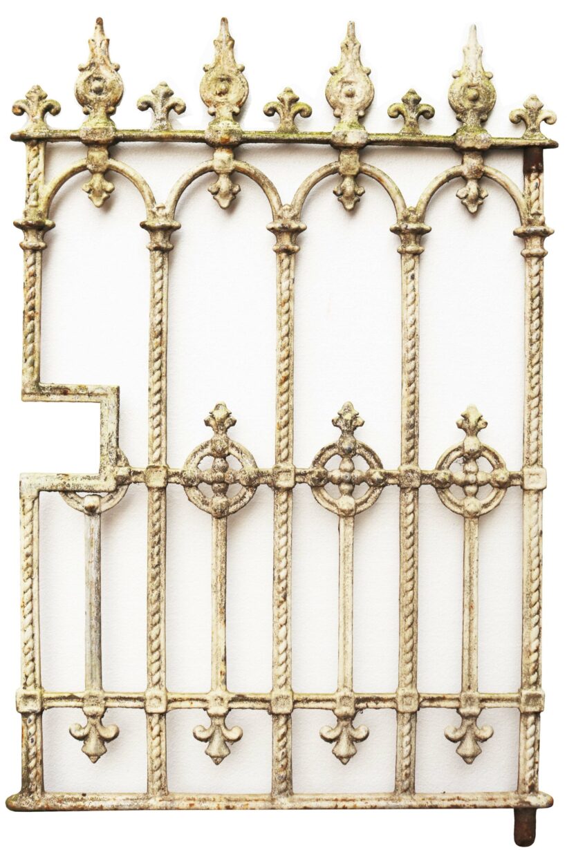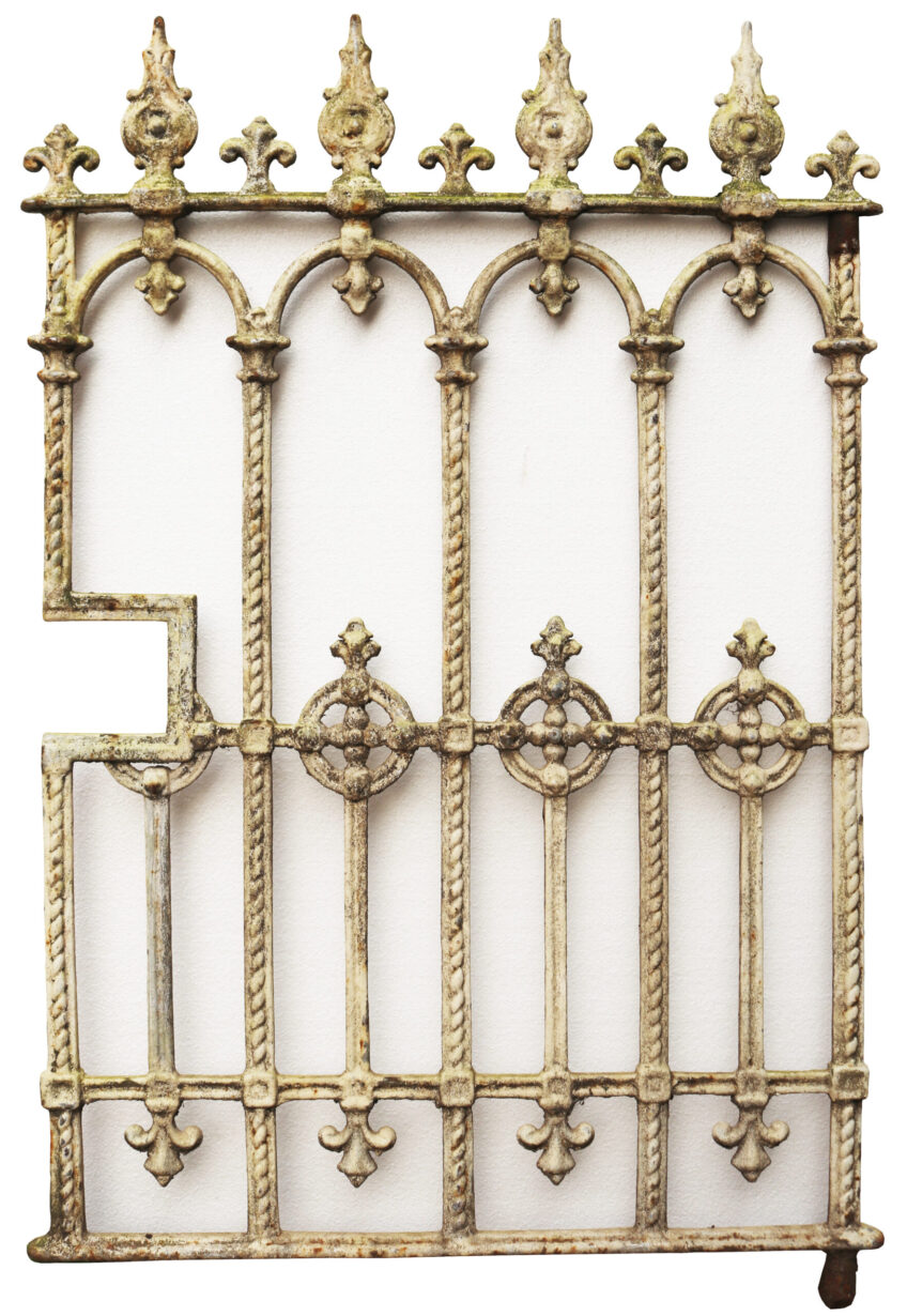 back to topVictorian Cast Iron Garden Gate. A small, traditional side gate with speared finials, finished in a rustic white paint.