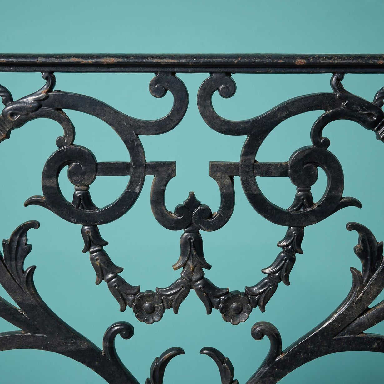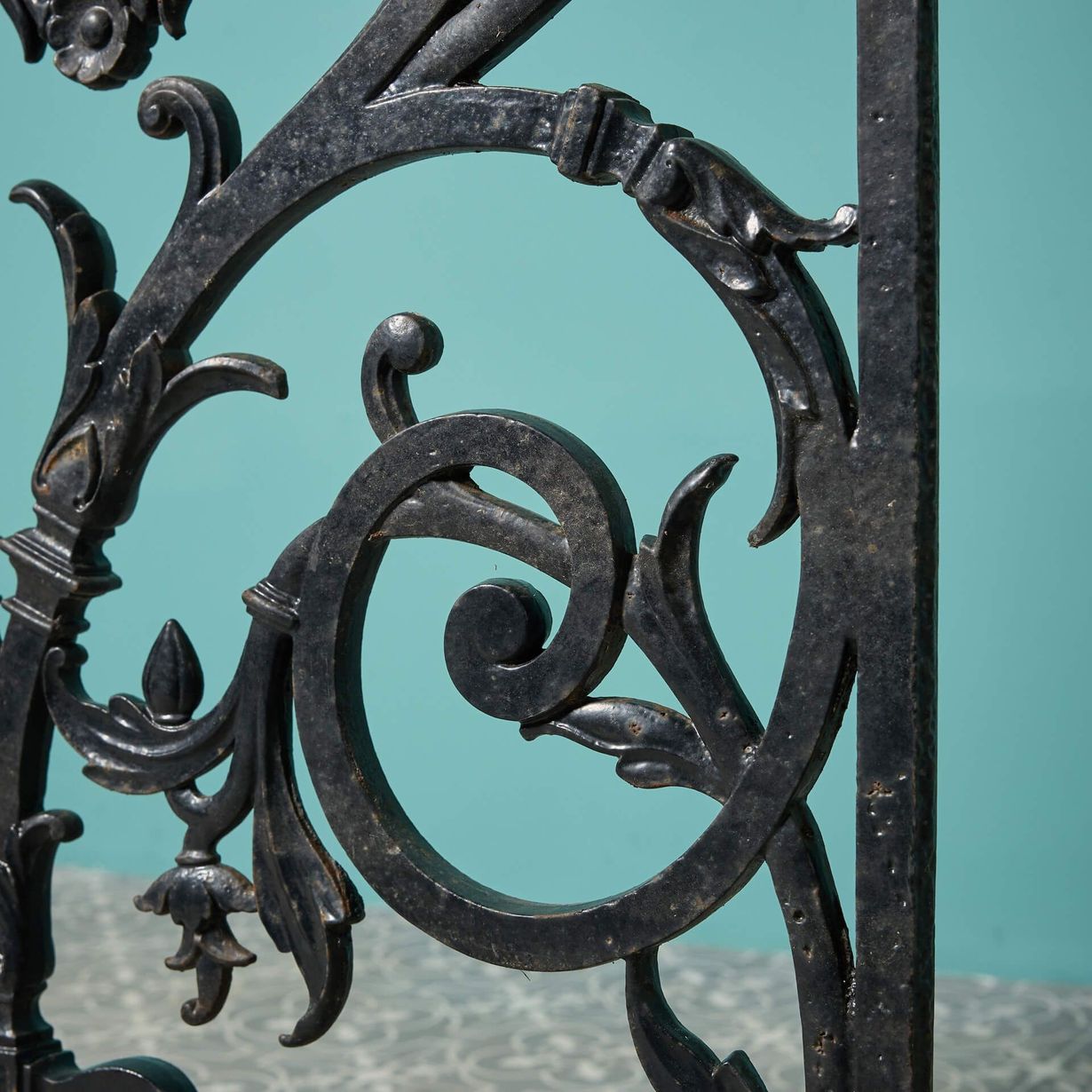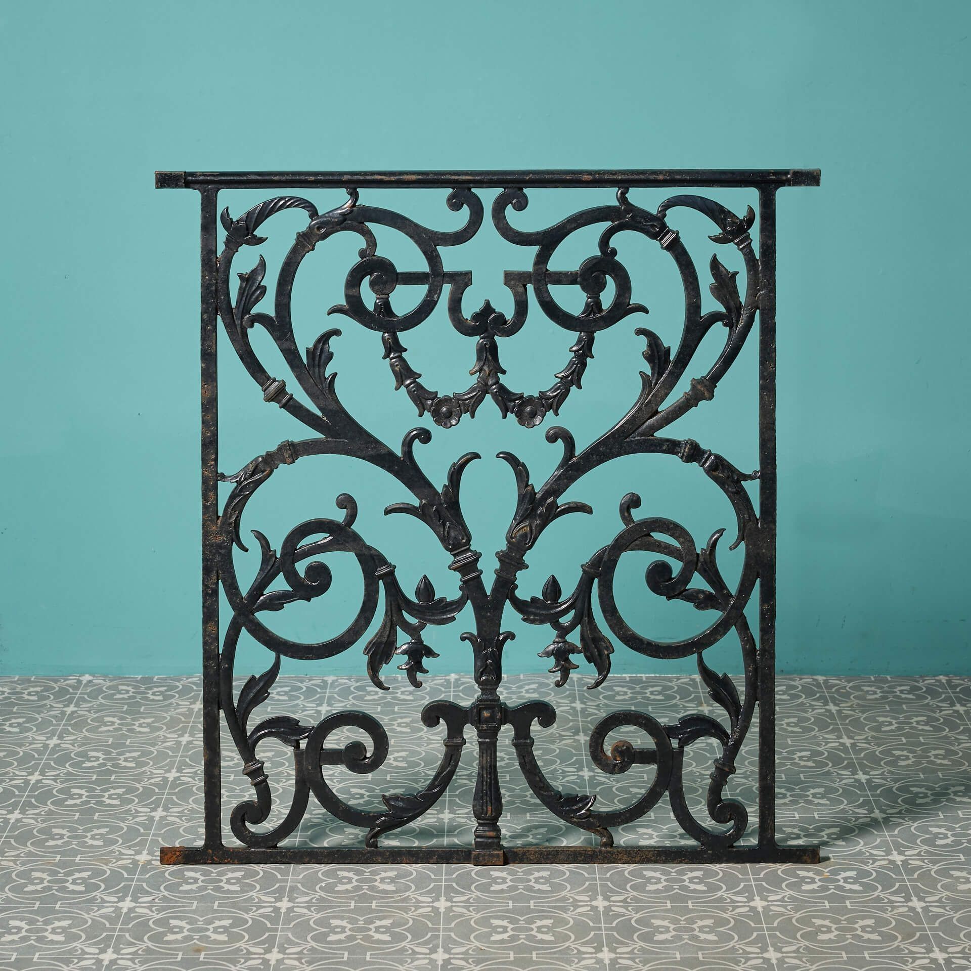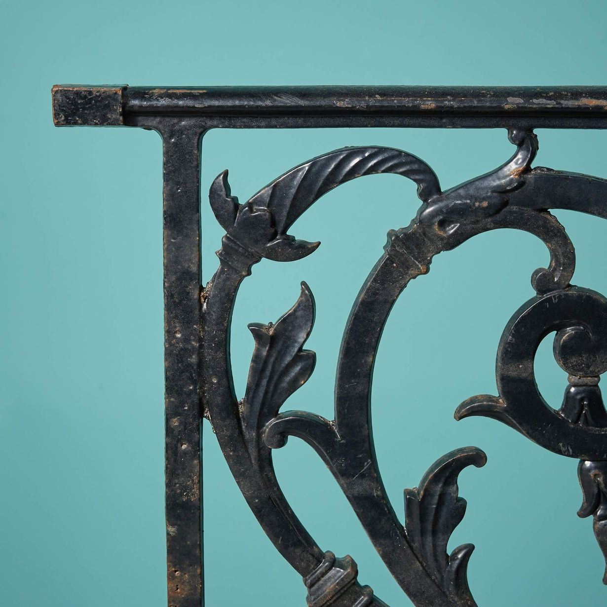 This 19th century iron panel is ornately cast with an abundance of scrolling foliage. Having stood the test of time for more than 135 years, this antique cast iron railing panel is a piece of reclaimed history for your property, looking beautiful as part of a traditional English garden scheme or a heritage feature of a modern home.