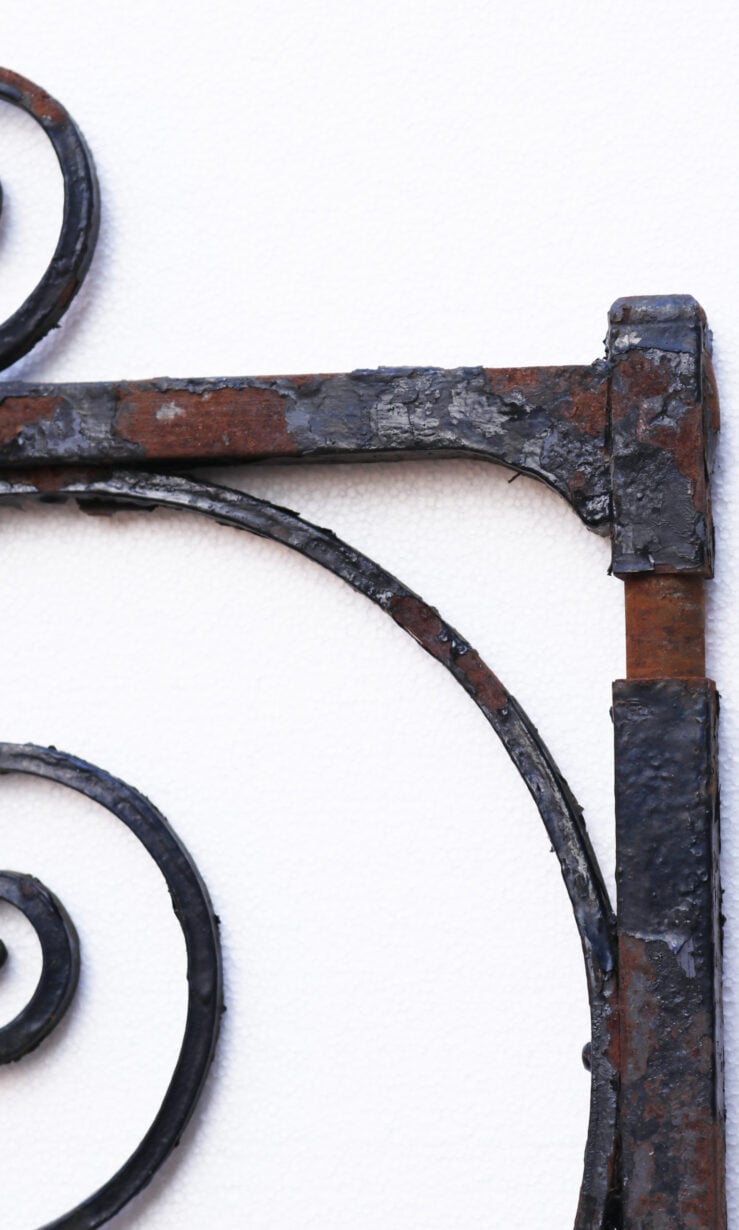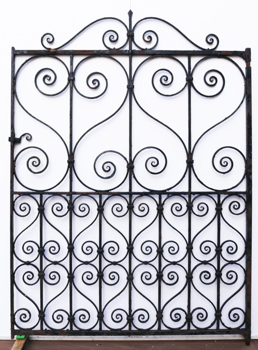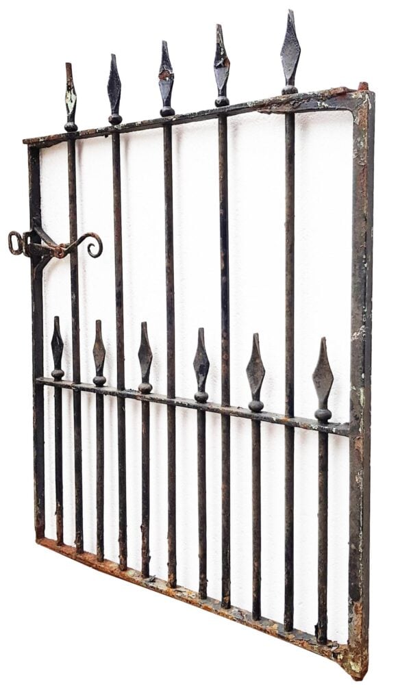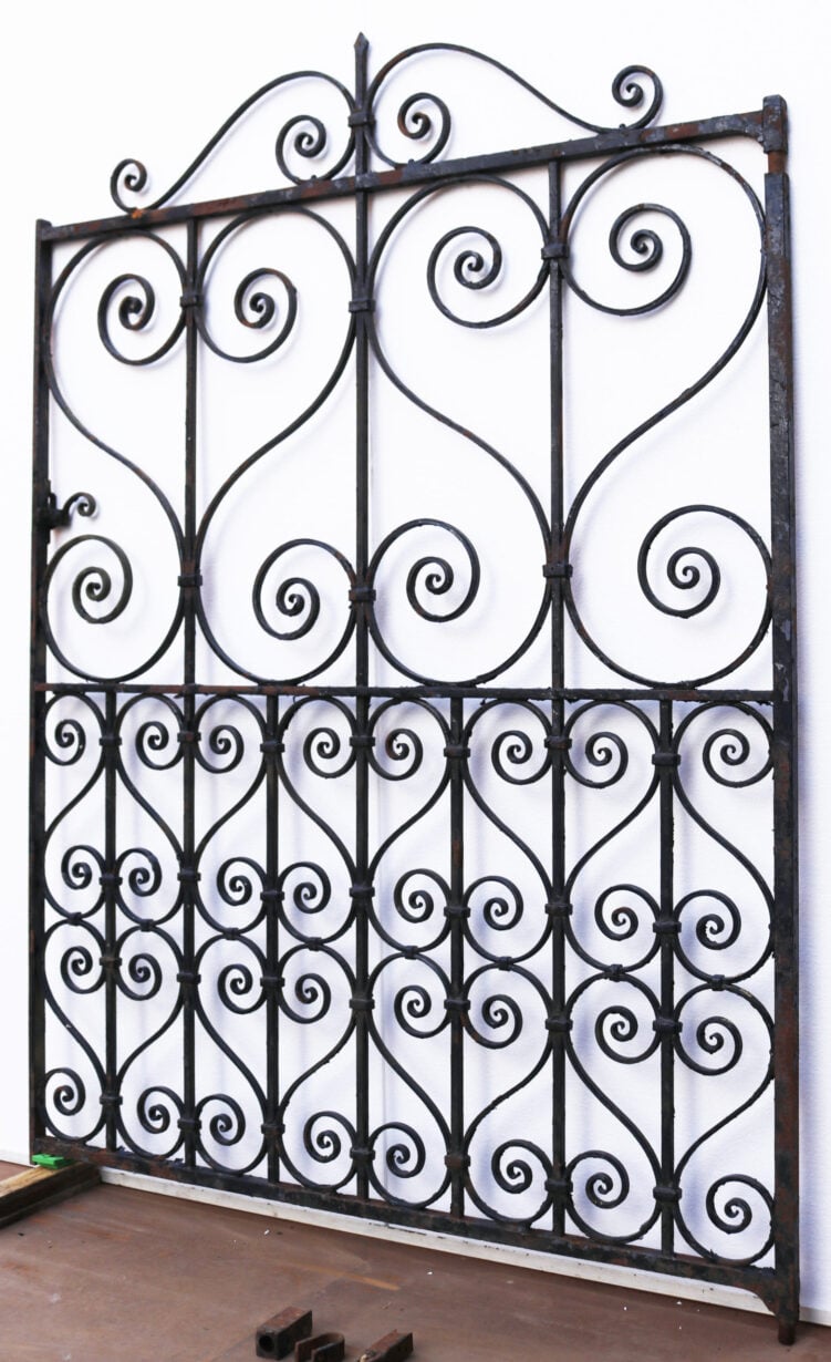 Good structural condition. The gate currently has an old flaky paint finish. The gate would benefit from being shot blasting, primed and painted. The gate has complete original hinge parts and there is a working latch attached.
