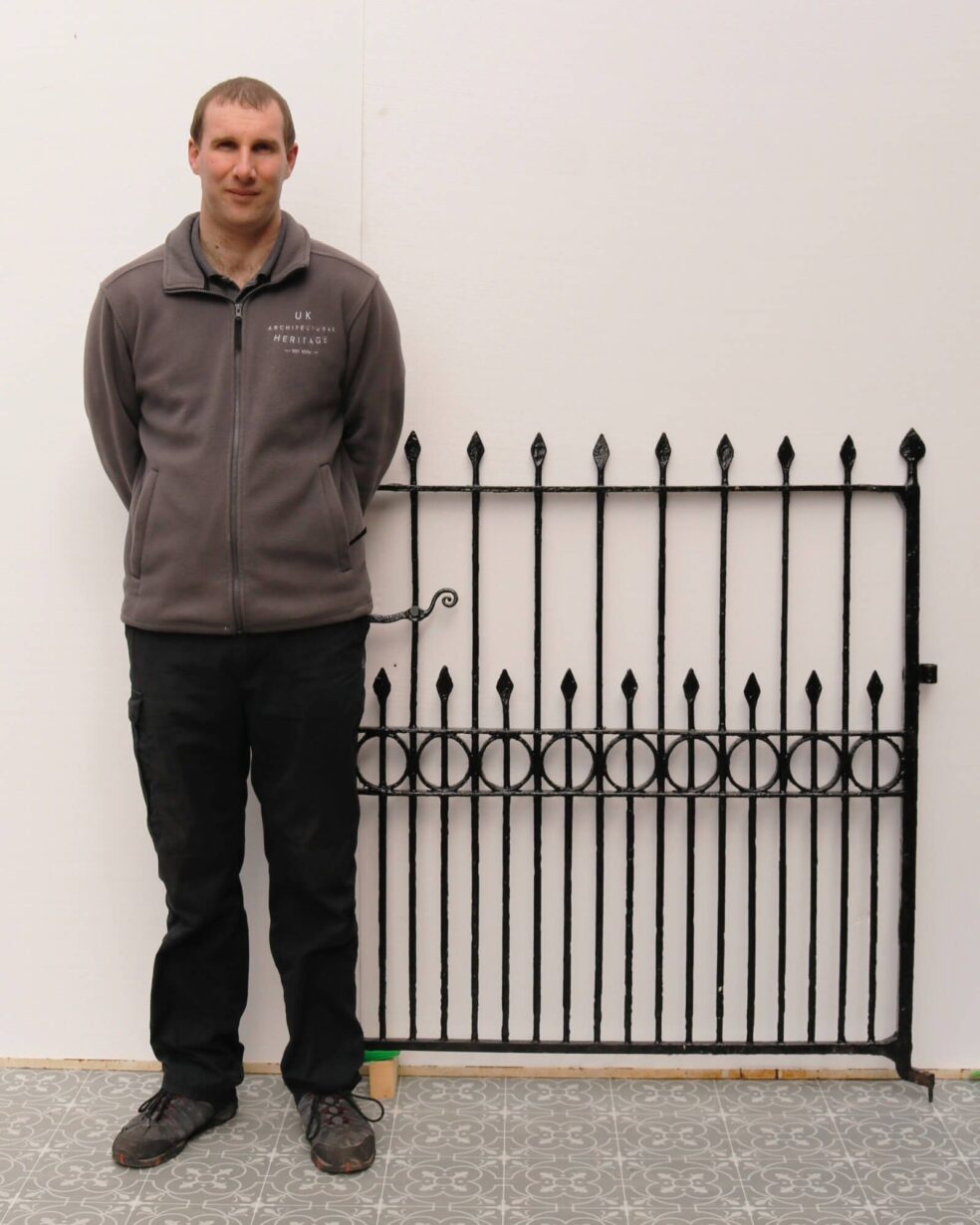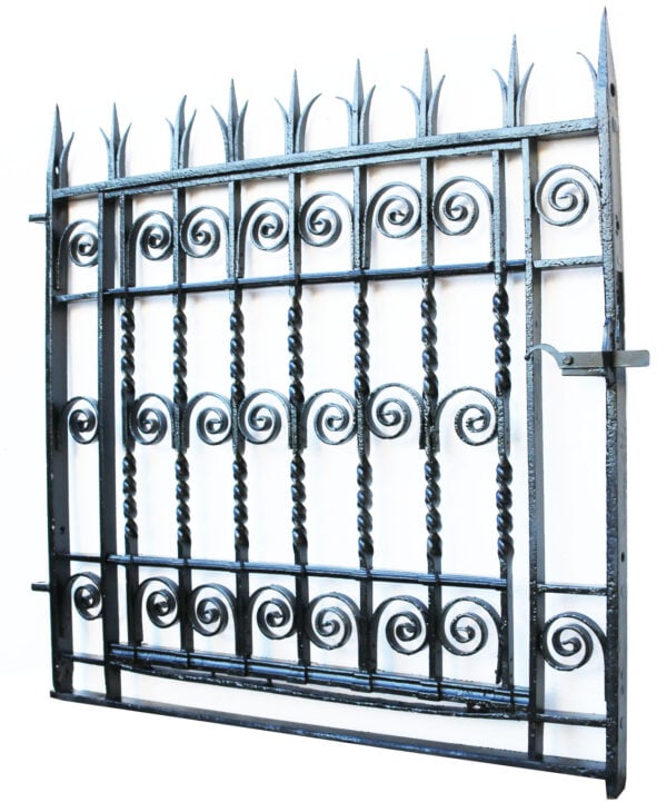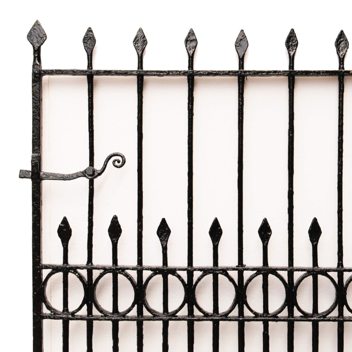 back to topA 200 year old antique wrought iron garden gate circa 1800. Smartly designed with spearhead finials, a generous width and tightly knit vertical bars to the base, this gate has a timeless quality that makes a beautiful feature in gardens old and new. Crafted by a talented early 19th century blacksmith, this antique side gate offers the perfect balance of security and style.